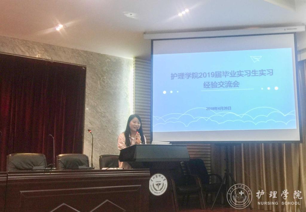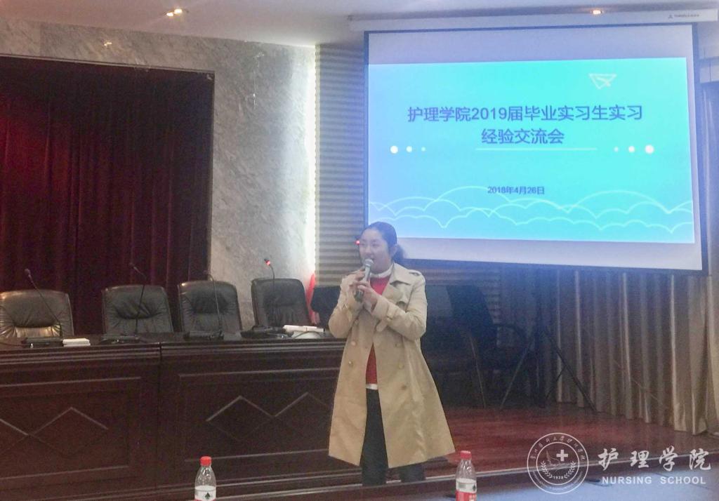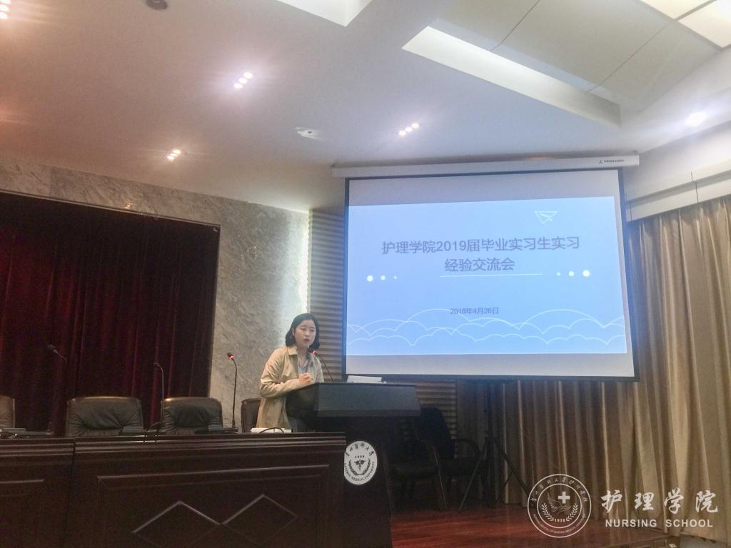 首先,李颖简单的介绍了出席交流会的同学和本次交流会的目的。接着,曾在重庆西南医院、YABO鸭脖附属医院、贵州省人民医院、贵州省妇幼保健院实习的优秀实习生代表唐昊宇、张敏、林娴、黄莉华、罗琳,结合自身情况分享各个实习医院的环境和要求,帮助大家初步熟悉实习地点情况、尽早进入实习状态。他们用实习期间积累的经验,向师弟师妹们讲解实习中会遇到的基本状况和突发状况及其应对措施,解说勤奋和情商的重要性,以及实习过程中要学会保护自己,并不断提高自身操作技能。让师弟师妹们直观的感受到了临床实习的氛围与激情。最后,学生科科长曾敏为本次交流会做出了总结,她希望同学们都要学好专业基本功,本着对生命负责任的态度对待实习,珍惜实习带来的宝贵实践经历,不断提高自身综合素质,用努力和行动,迎接明天的成功。