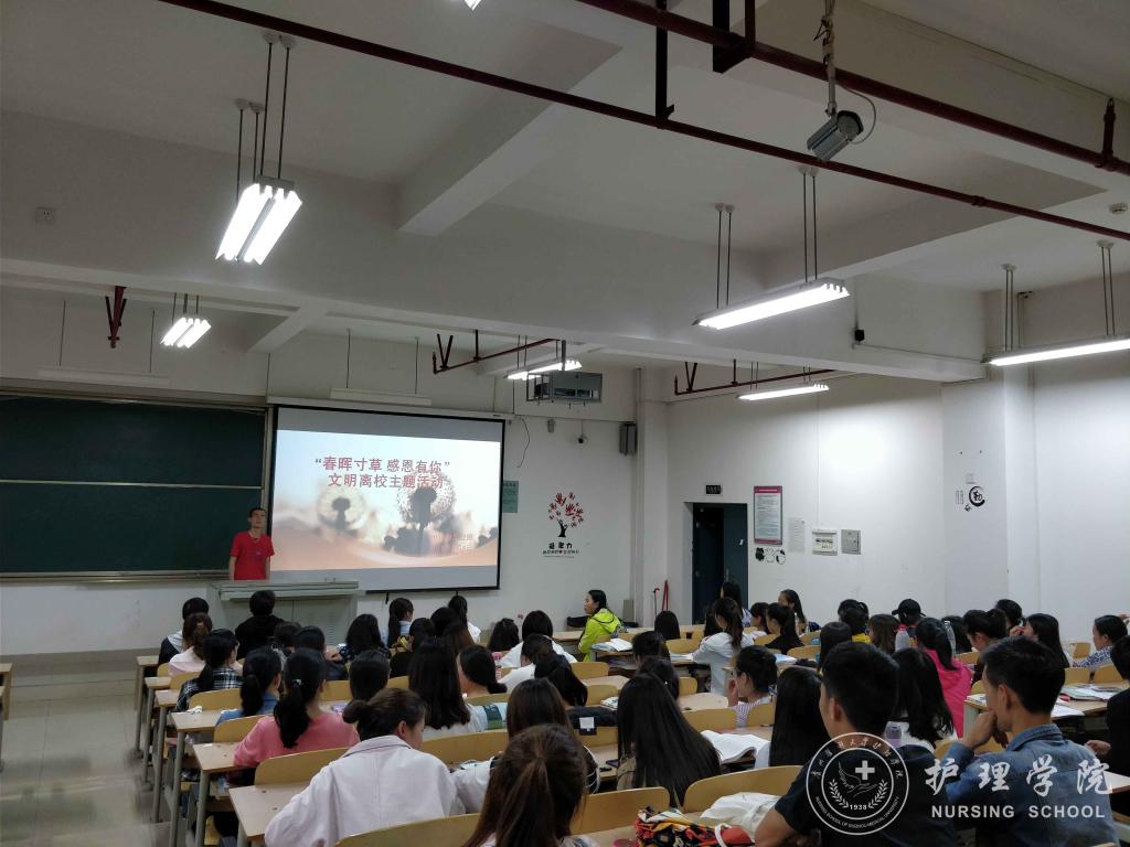 为增强毕业生自律和感恩意识,推进毕业生文明离校工作,5月8日下午,YABO鸭脖2018届毕业生在北校区4601教室开展了“春晖寸草,感恩有你”文明离校主题班会。班会由2014级护理本科班团支书文远哲主持。