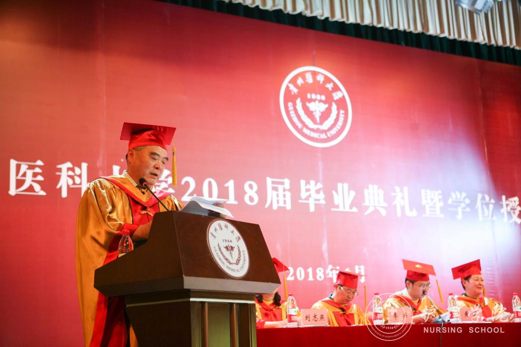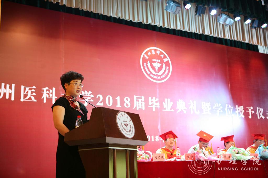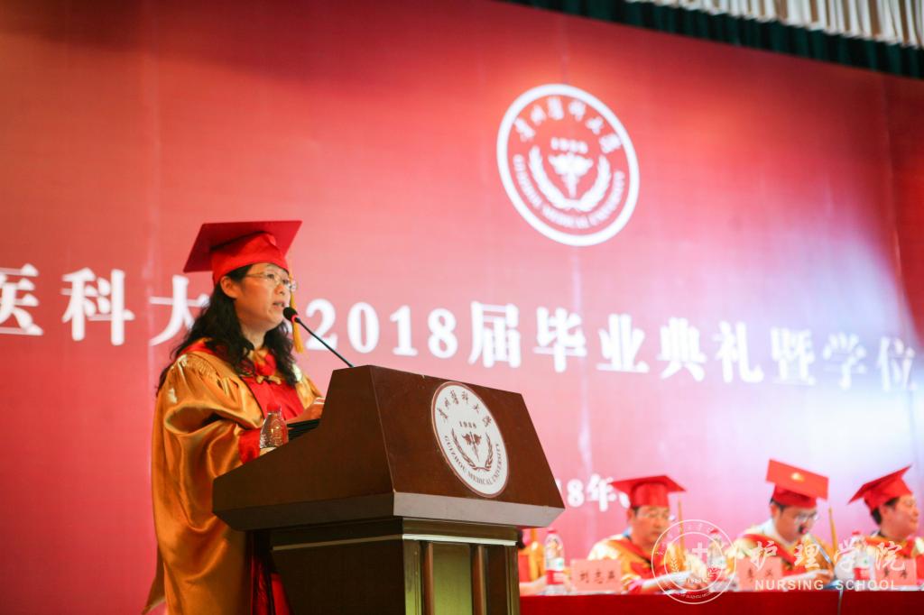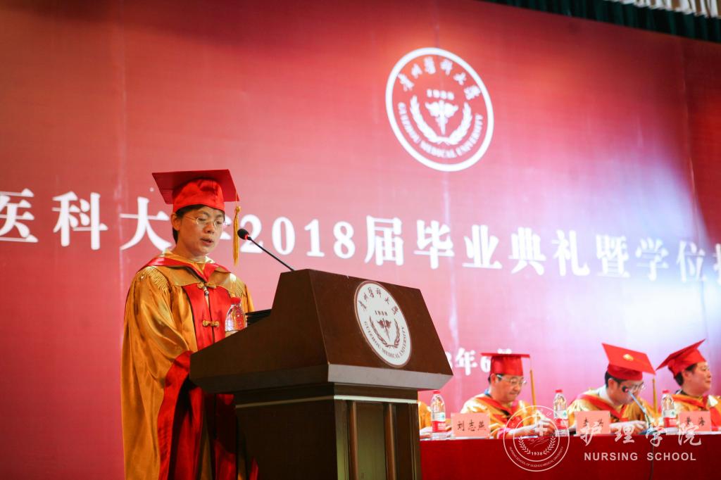 医学检验学院党委书记蒋红梅教授、医学影像学院党委书记李雪梅副教授分别宣读了省级、校级优秀毕业生的表彰决定;医学影像学院院长周石教授宣读了学校学位评定委员会决议。