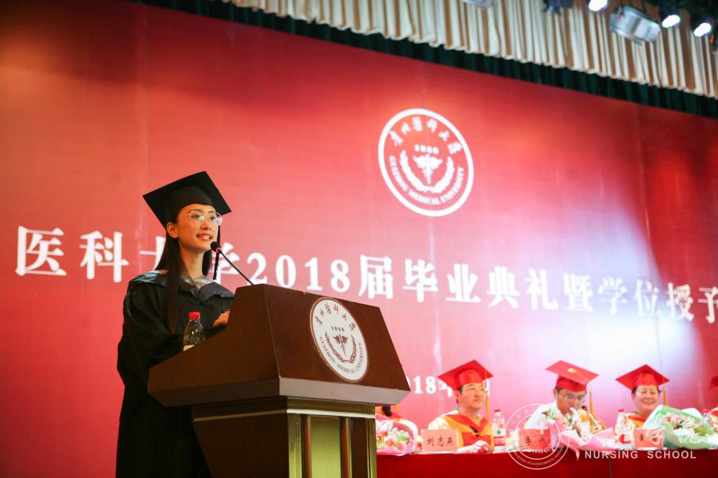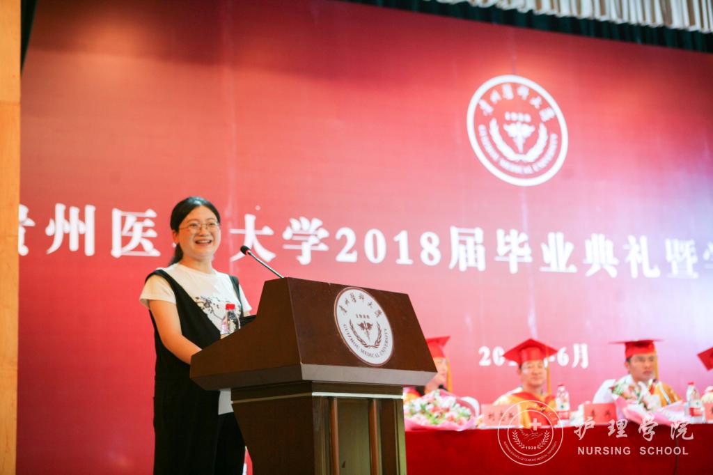 随后,毕业生代表向领导及教师代表献花;教师代表医学检验学院莫菲教授发言;优秀校友钱兰芳发言;护理学专业本科毕业生代表喻婷发言。