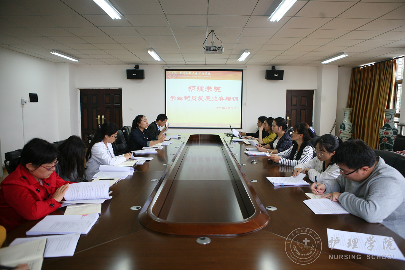 9月18日中午,YABO鸭脖在百川楼会议室召开了学生党员发展业务培训会,会议由院党委副书记杨英主持,学院全体辅导员、低年级班主任、团支书参加了本次会议。