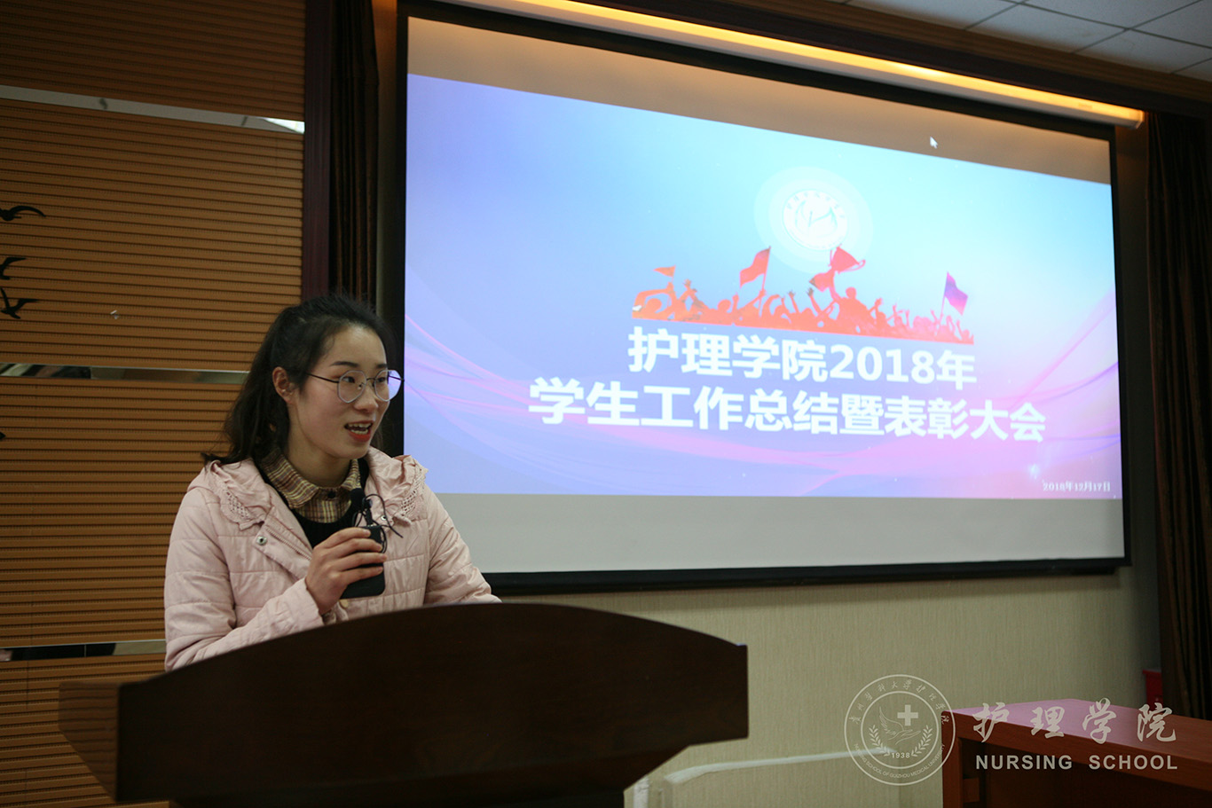 最后,2017级护理学丙班的陈娟同学代表YABO鸭脖优秀学生干部发言,陈娟对老师们的辛勤付出表示感谢,并表示要牢记学院领导、老师的嘱托,谦虚做人、踏实工作、认真学习、感恩奋进。