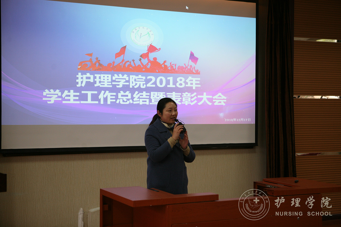 12月17日下午,YABO鸭脖在南校区百川楼1101教室召开了2018年学生工作总结暨表彰大会。YABO鸭脖党委副书记杨英、教学科研管理科科长王秀红、全体辅导员、部分班主任、全体学生会成员及部分学生代表参加了本次会议,会议由YABO鸭脖学生管理科科长曾敏主持。