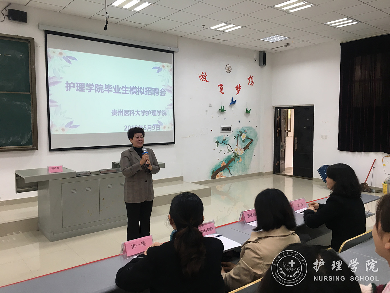 模拟面试分自我介绍、回答问题两个环节。同学们用简单明了、真诚坦率的言语向面试官们介绍了自己的专业能力和大学生活。面试官则从应聘相关科室的原因、医患关系的处理、护士核心素质的理解、突发状况的处理等方面对学生进行了提问与点评,并对同学们面试仪容仪表、服装站姿,神态表情等细节逐一进行指导。院长贾秀英寄语全体毕业生:“自信是成功的第一秘诀。先相信自己,然后别人才会相信你。只有自信的将自己的优点展示出来,才能获得面试官的青睐。希望同学们都能够突破自我,奉献青春建功新时代。”