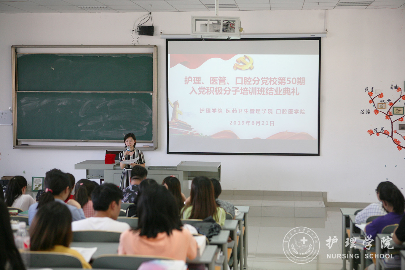 6月21日,护理、医管、口腔分党校第50期入党积极分子培训班结业典礼在南校区7404教室举行。口腔医学院党委副书记钱禾、YABO鸭脖党委副书记王秀红、医药卫生管理学院分团委书记刘安跃及培训班全体学员参加了结业典礼。典礼由本期培训班班主任、YABO鸭脖学生第二党支部书记马景瑶主持。