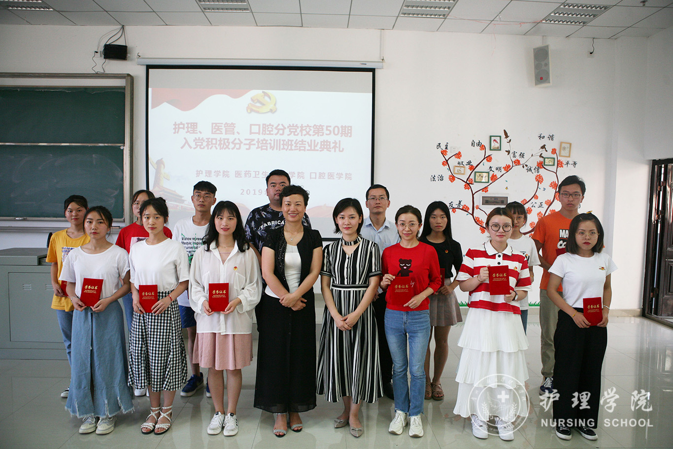 典礼开始,全体起立,奏《国际歌》。接着,优秀学员代表张婷、李庆美代表本期入党积极分子培训班学员进行交流发言,分享了自己的学习收获,对自己的思想、学习等方面提出了新的目标和更高的要求。钱禾代表YABO鸭脖党委、口腔医学院党委、医药卫生管理学院党委向全体顺利结业的学员表示热烈祝贺,向为本期培训班辛勤付出的老师们表示衷心的感谢!钱禾指出,护理、医管、口腔分党校高度重视本期培训班的各项工作,经过老师和同学们的共同努力,圆满地完成了预定的培训任务。同时,钱禾就学员们如何在实践中巩固和扩大培训成果,不断成长进步,提了三点希望:一是希望学员们在学习中提高站位。二是希望学员们在奋斗中担当使命。三是希望学员们在实践中争做先锋。最后,马景瑶宣读了分党校对蓝阔耀、陈艳等12名优秀学员的表彰决定;出席结业典礼的领导、老师为优秀学员颁发了荣誉证书,并合影留念。