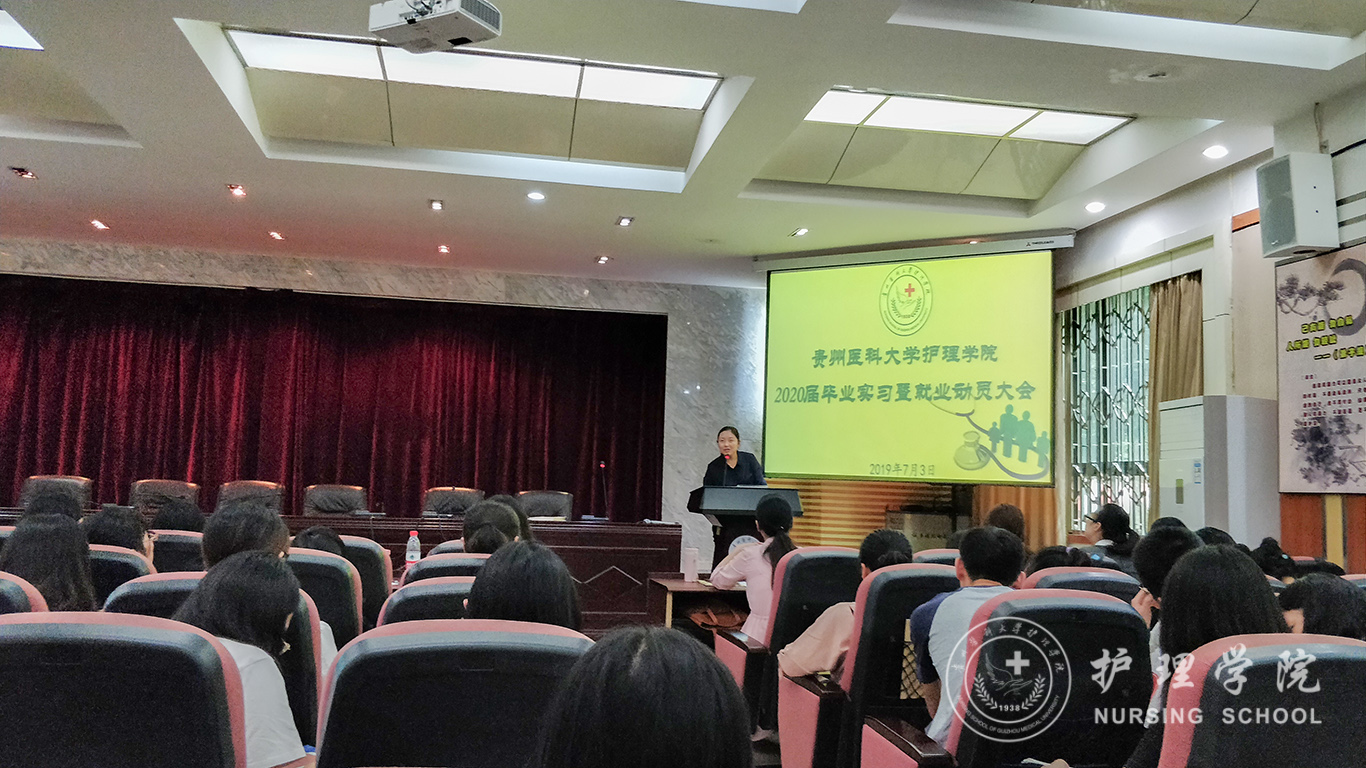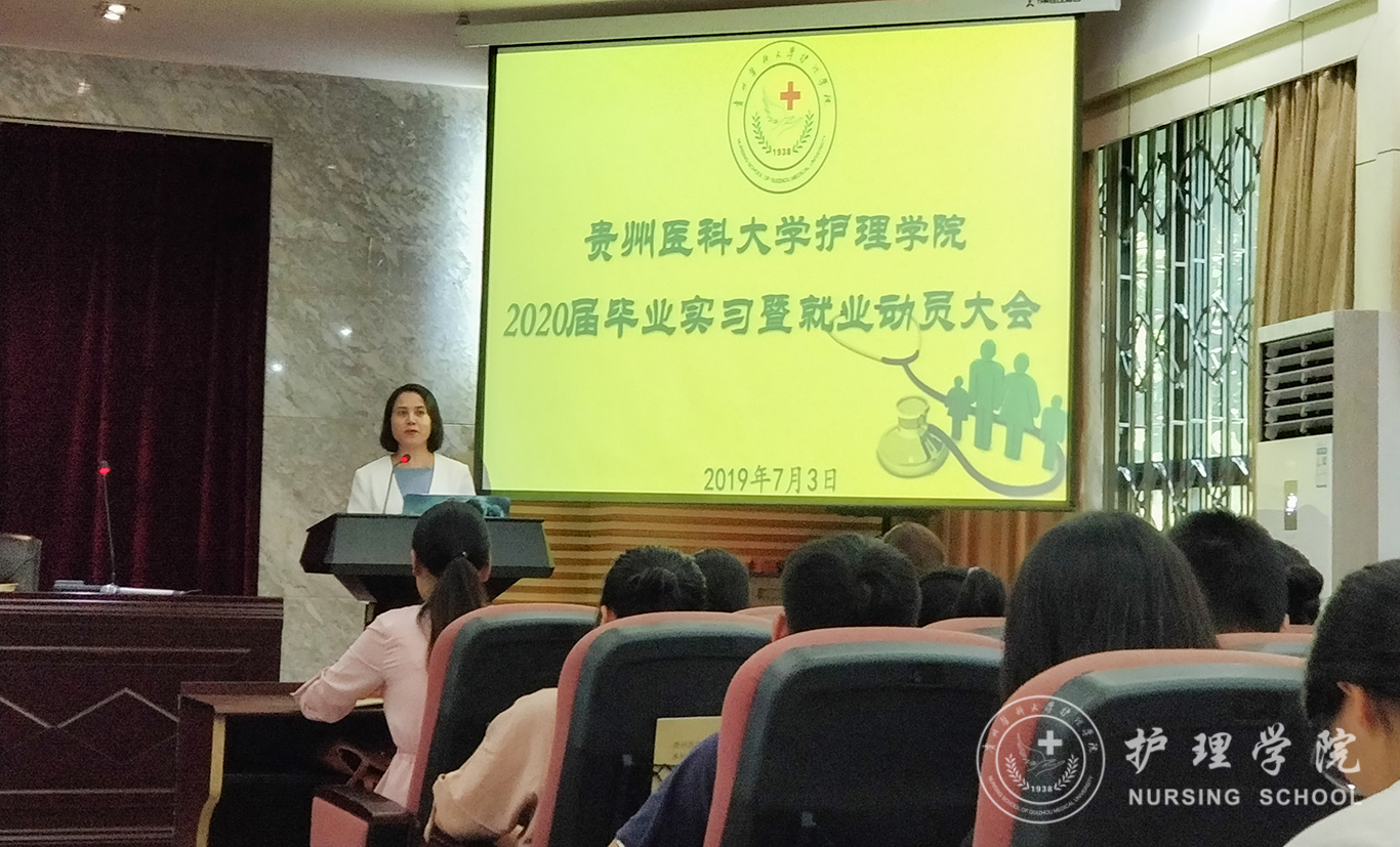 为帮助即将步入实习的同学们正确认识实习,做好实习准备,了解就业形势,明确就业方向,7月3日,YABO鸭脖在北校区道德讲堂召开了“2020届毕业实习暨就业动员大会”。YABO鸭脖党委书记杨英、副院长刘志燕、生产实习科科长柳忠燕、学生科科长曾敏以及2016级全体同学参加了本次大会。会议由曾敏主持。