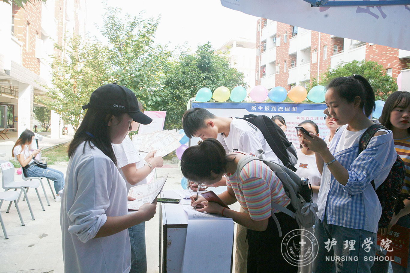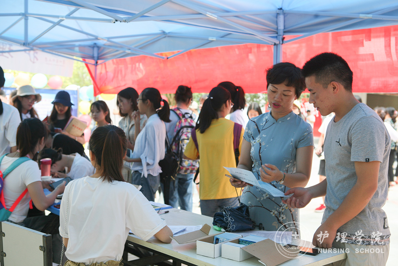 8月25日上午,迎着晨曦的光芒,志愿者们早已在迎新点集结,耐心地指导新生办理各种手续、主动为新生答疑解惑的同时更是热心地帮助新生及新生家长举牌引路、搬运行囊,一声问候、一个微笑无不表现出鸭脖师生对2019级护院学子的热切欢迎。期间,学校党委书记林昌虎等校领导在相关部门负责人的陪同下亲临迎新现场指导工作。林书记详细询问了新生报到情况,并强调迎新工作是展示贵医精神的窗口,要以热情周到的服务展示贵医风貌、护理风貌。便捷的“互联网+班级管理”技术的应用、贴心设立的家长接待处、情真意切的“致家长的一封信”获得了校领导的认可与肯定。