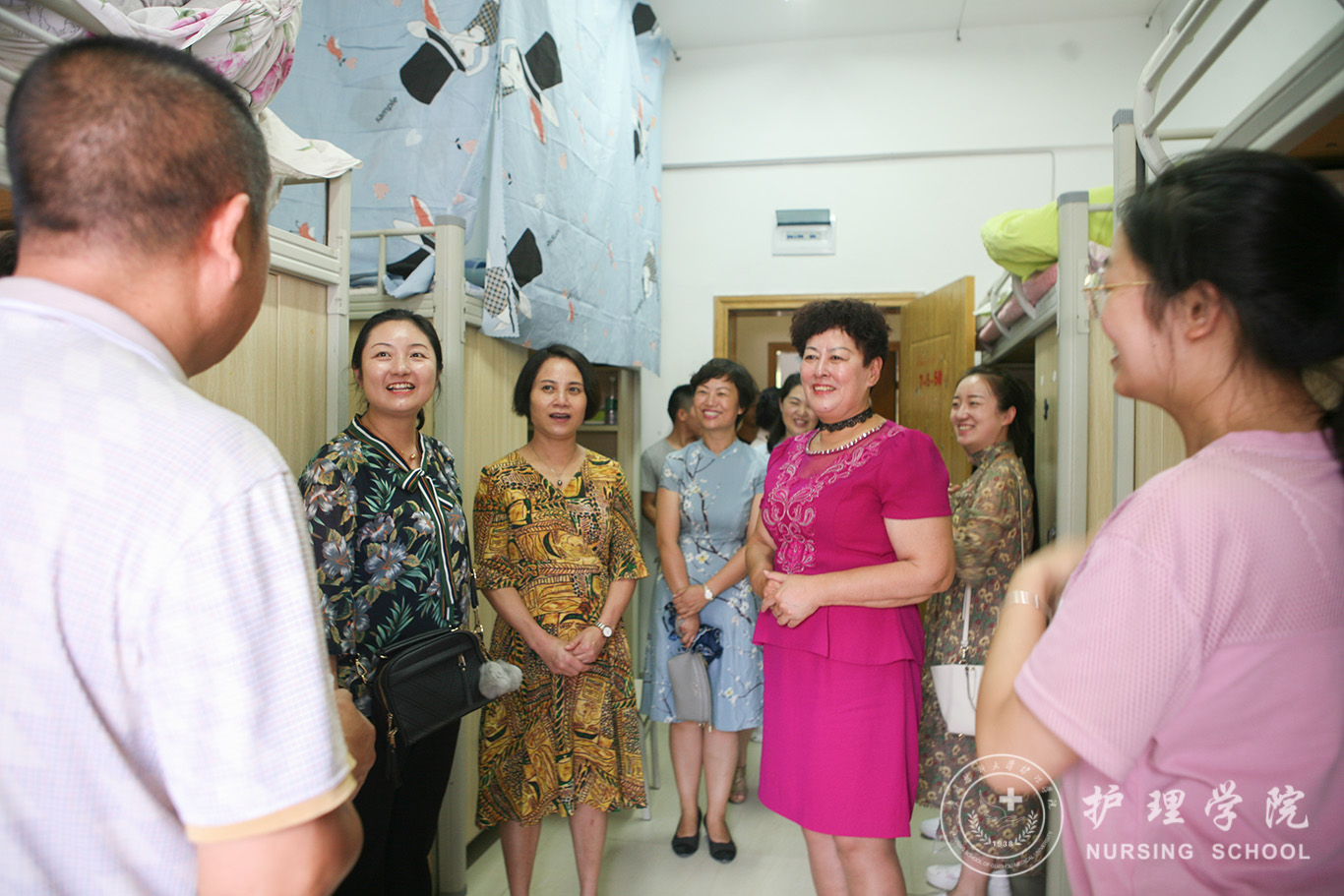 迎新工作接近尾声之际,学院党委书记杨英、院长贾秀英、党委副书记王秀红、副院长刘志燕一行走访了新生寝室,为新生及新生家长带去了学院领导老师的暖心问候、亲切关怀。