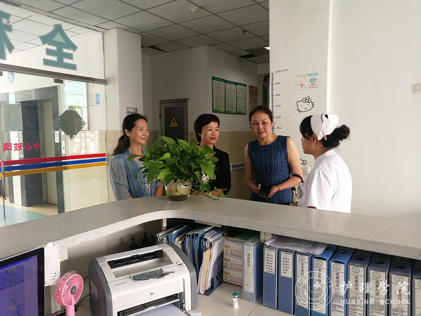 8月26日,学院党委副书记王秀红及生产实习科科长柳忠燕藉参加专升本班开学典礼之机,到第三附属医院看望鸭脖护理学及助产学专业实习同学,与护理部临床实习教学管理老师一起走访了相关科室,详细询问了解了同学们的现实表现,和病房护士长、带教老师等进行了亲切交谈,交流带教经验。同学所在科室均给予了同学们很高的评价,特别是对理论知识的掌握及工作纪律、沟通合作方面给予充分的肯定。