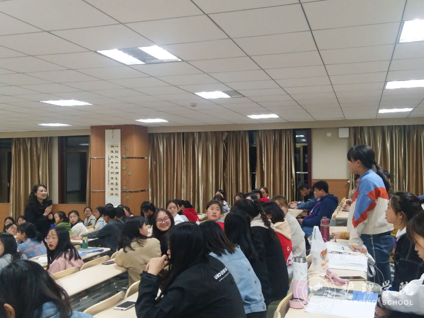 最后,同学们就考研、执业资格考试、恋爱、兼职、实习等问题踊跃发言,柳忠燕逐一、耐心的予以解答,并激励同学们更加努力地做好自己,争取成为在校老师同学喜欢,在医院令病人放心的优秀一员!
