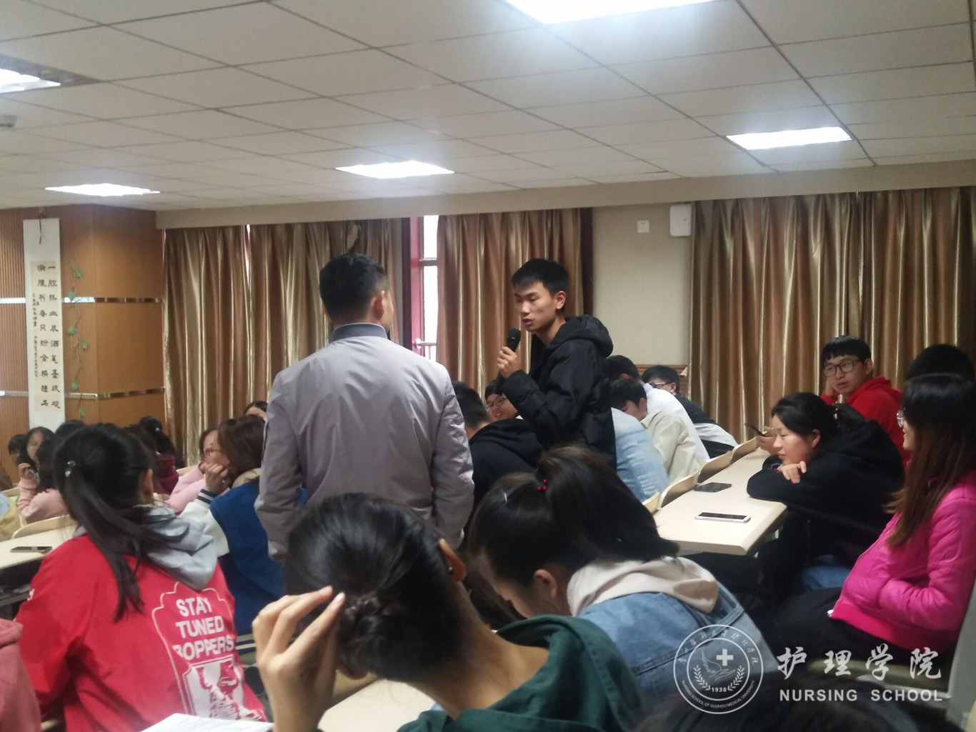 此次交流会特邀YABO鸭脖生产实习科科长柳忠燕,遵义医科大学附属医院急诊科罗公印老师为同学们解惑释疑。护理学2018级乙班、助产学2018级全体学生参与,护理学2018级丙班部分学生参与。