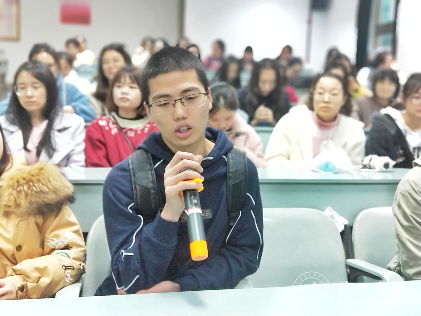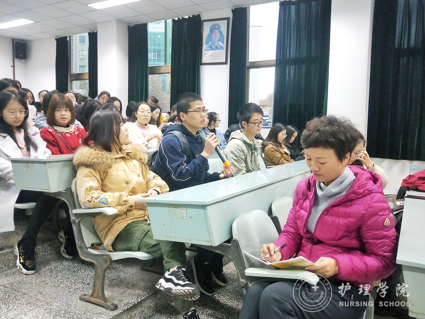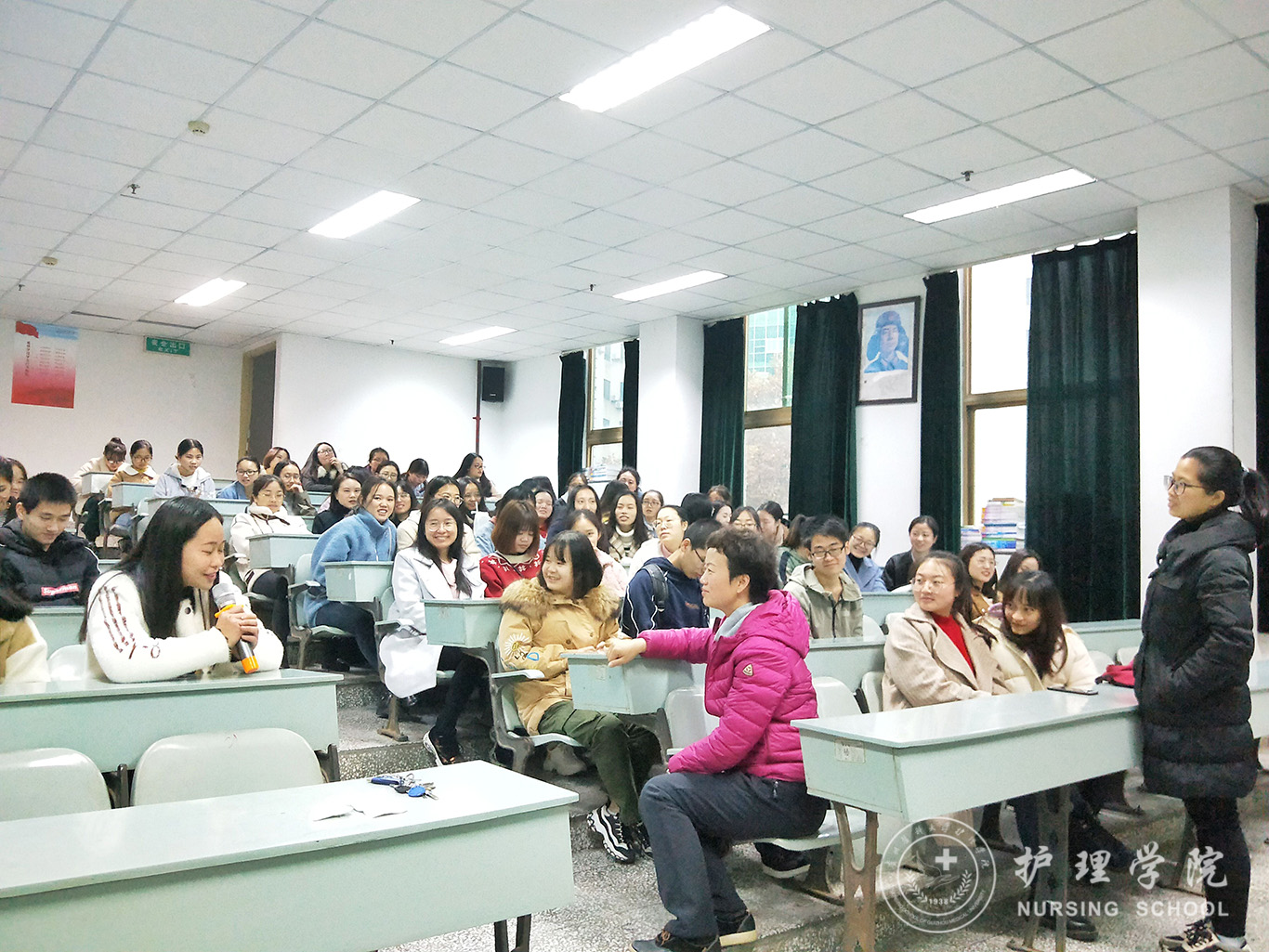 首先,王秀红用亲切平实的语言讲述了自己的实习故事,分享了她在实习中的所见所闻所感,重点讲述了在实习中遭遇逆境时,如何调适情绪,端正实习态度,迎难而上,顺利完成实习工作。此外,王秀红还讲述了自己如何慢慢适应岗位工作,找准定位,最后得到了领导、同事以及病人肯定,成为一名优秀护理工作人员的心路历程。接下来,同学们纷纷倾诉了自己在实习过程中遇到的困惑,毕丽为大家分享了作为患者就医的两次不同体验,让同学们感知站在患者的角度上看待护理工作。在听完同学们的倾诉和毕丽分享后,王秀红从职业特点、情绪调适、自我定位以及责任担当四个方面进行了总结,引导广大实习生树立正确的人生观、价值观,找准自己的角色定位,勇于担当,争做新时代优秀的护理人才。