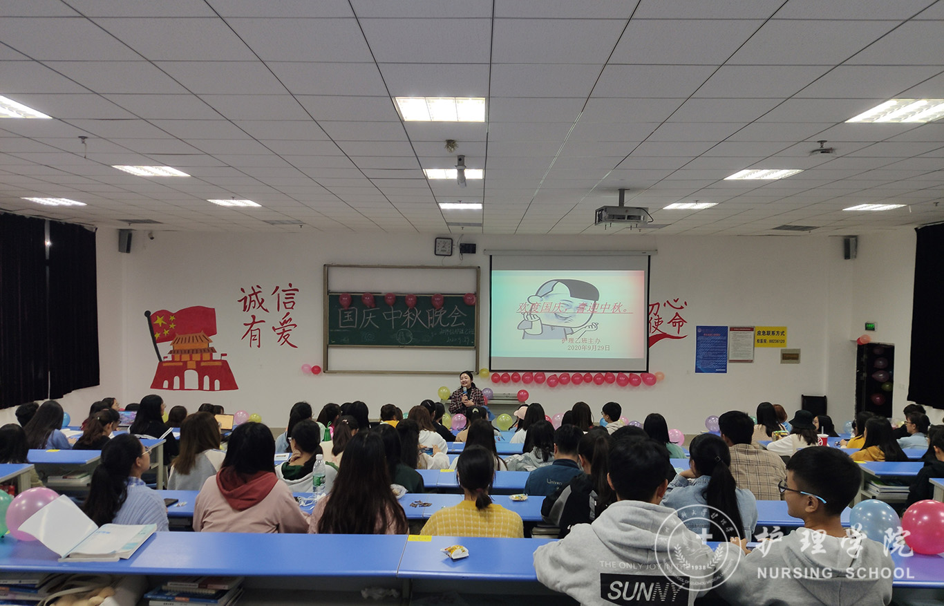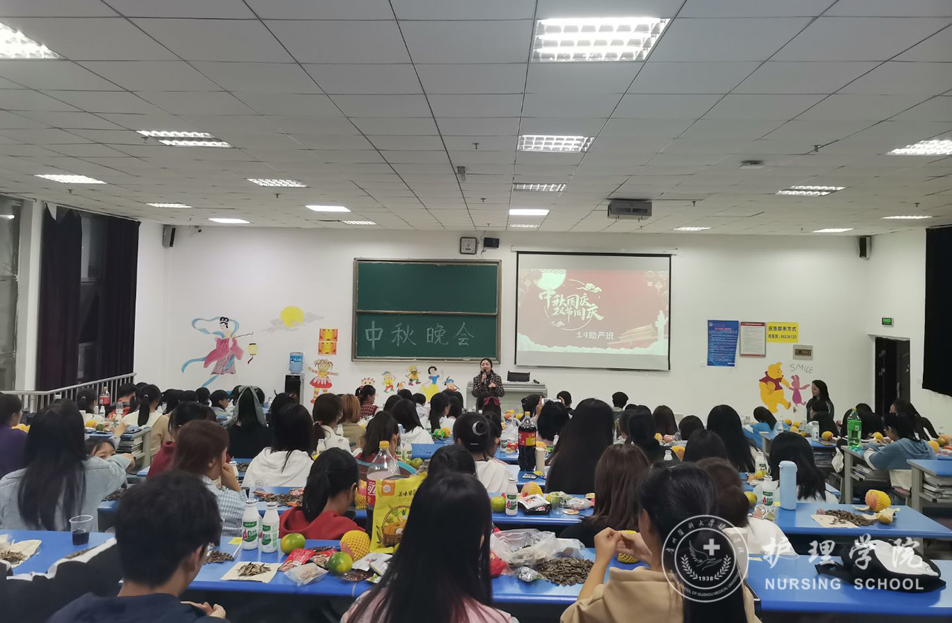 为迎接中华人民共和国成立71周年,喜庆中秋佳节,进一步丰富同学们的文化生活,9月29日晚,YABO鸭脖助产学2019级、护理学甲、乙、丙班在各班教室举办了“情满中秋欢度国庆”文艺晚会,辅导员曾敏、杨叶卿,班主任老师以及全体同学欢聚一堂共庆佳节。