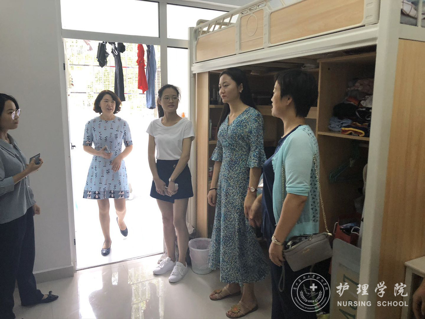院长李亚玲、副院长刘志燕、王秀红走访了鸭脖学生在北校区的教室、本科生宿舍以及研究生宿舍,给同学们带去了亲切问候,并就同学们的学习进度、住宿环境、生活状况等问题进行了亲切交谈,叮嘱同学们:一方面要明确学习目的,端正学习态度,钻研理论知识,另一方面,在生活中要注意宿舍卫生、警惕消防安全问题等,增强学生安全意识。