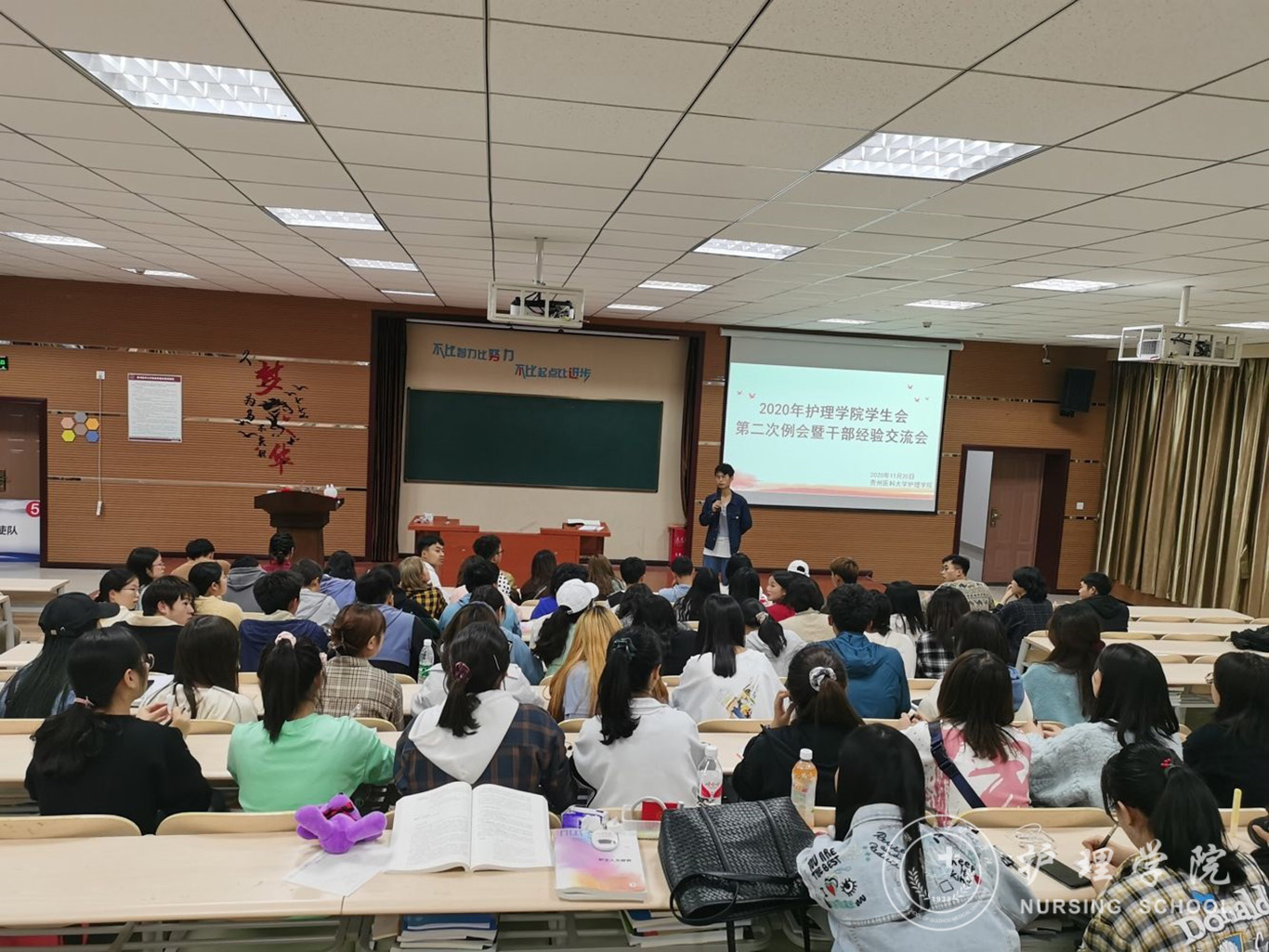 11月20日下午,为提高鸭脖学生干部的工作效率与能力,增强各部门间的交流与合作。鸭脖于百川楼1101教室开展了学习十九届五中全会精神会议暨第二次例会,本次例会由YABO鸭脖学生会全体成员、2019级—2020级各班班长和团支书参与,例会由学生会副主席罗茂龙同学主持。