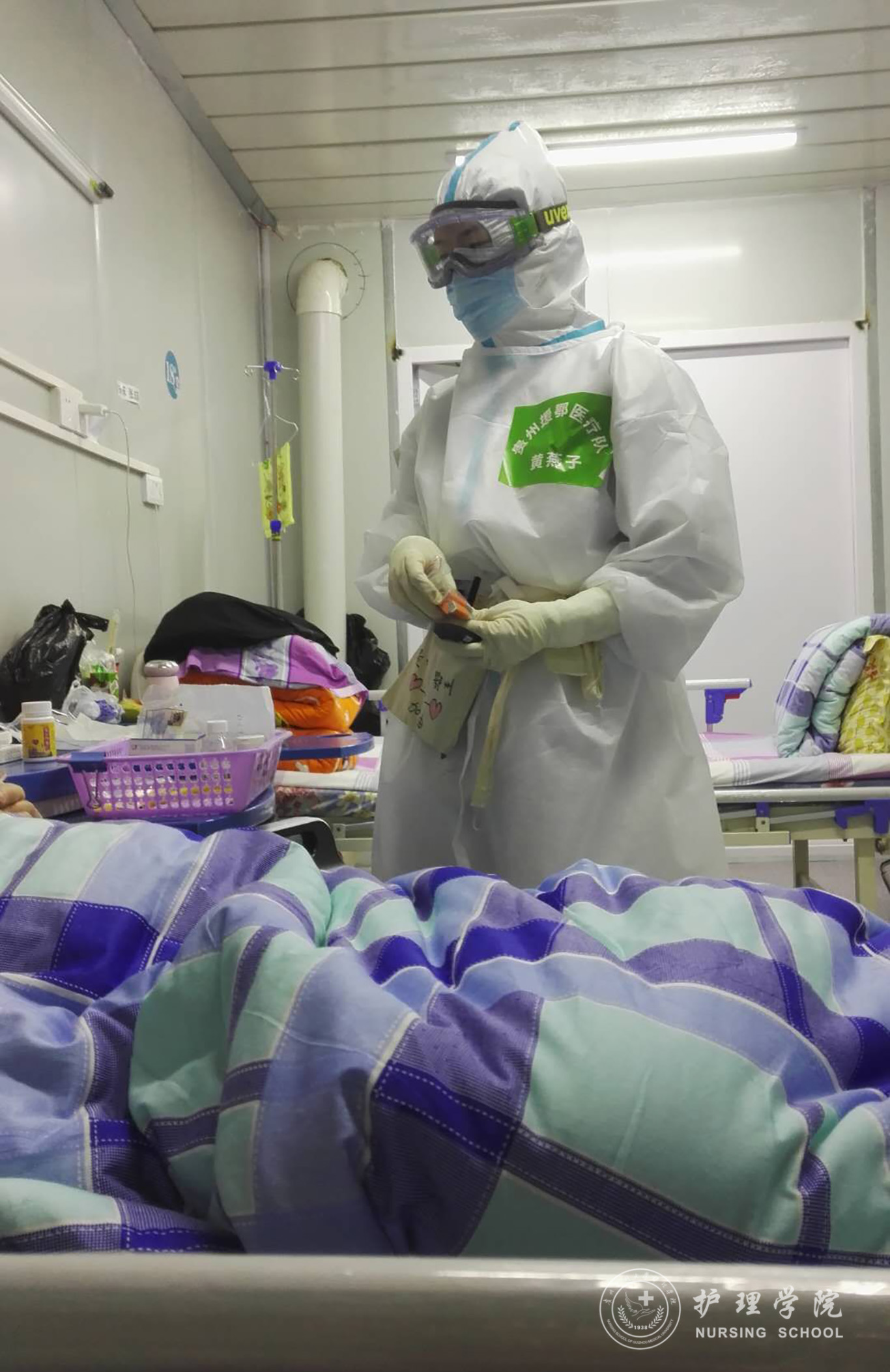 2020年2月22日凌晨4点36分正在上夜班的黄燕子接到紧急前往湖北支援鄂州的电话,她放下电话后来不及和家人告别,匆忙赶回家中收拾了衣物前往湖北,毫不犹豫奔赴疫情的最前沿。黄燕子说:“医疗前线是战场,疫情面前我们是战士,在这个危难时刻,在祖国最需要医护人员之时,能被湖北人民需要,能尽自己一份绵薄之力是无比的荣幸与自豪”。她用最简短、最朴实的语言诠释了救死扶伤的白求恩精神和无私奉献的职业道德,她与一同前往湖北的战士们是这场战”疫”的最美逆行者。她说:“作为90后,现在经过这一次的历练,就感觉到自己迅速成长起来了,我们在通过自己的勤勉学习提升自己的本领,终将有一日成为像钟南山院士一样的中流砥柱。”如此,黄燕子所在的鄂州市雷山医院感染五病区医疗组负责39个病人,她不忘初心,牢记使命,用心用情救治护理,终得患者全部治愈出院。