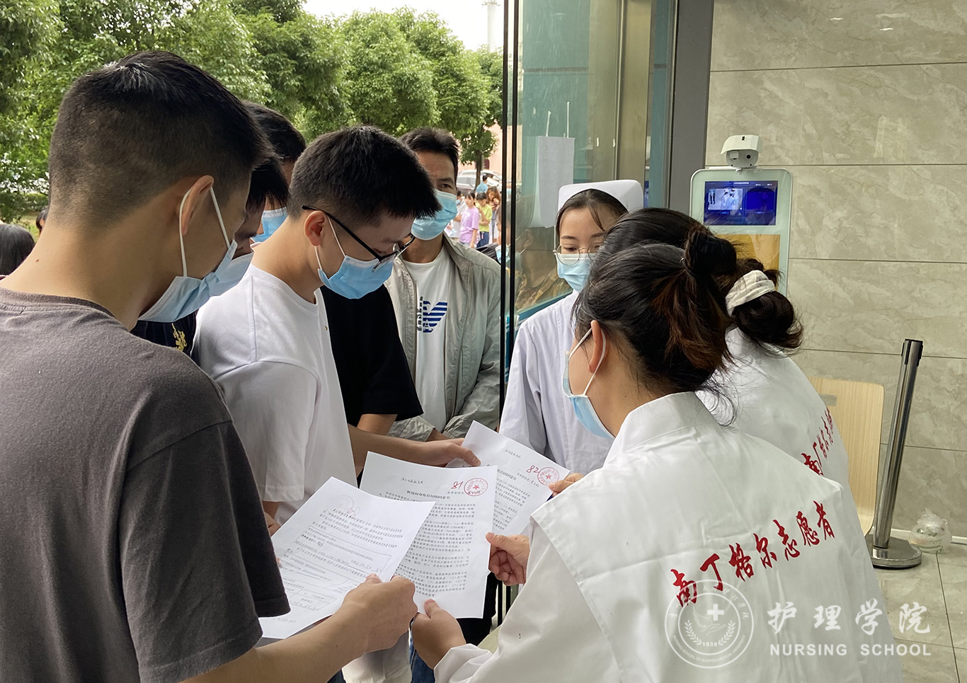在医院老师的带领下首先了解学习各科室临床专科疾病性质、相关规章制度和日常护理工作职责。起初在面对患者的时候,志愿者们也会紧张、手足无措,但同学们对知识的探索和渴求使他们没有退缩,克服了困难,主动向有经验的护士老师学习,通过多次志愿服务,对医院工作越来越熟悉,面对患者也不再紧张。尤其是对前来医院接种新冠疫苗的居民,志愿者们发挥出他们护理专业特长,耐心细致地解答接种者的各种问题,传播新冠肺炎的相关防控知识,用自己的专业知识,把温暖传递给需要的人。