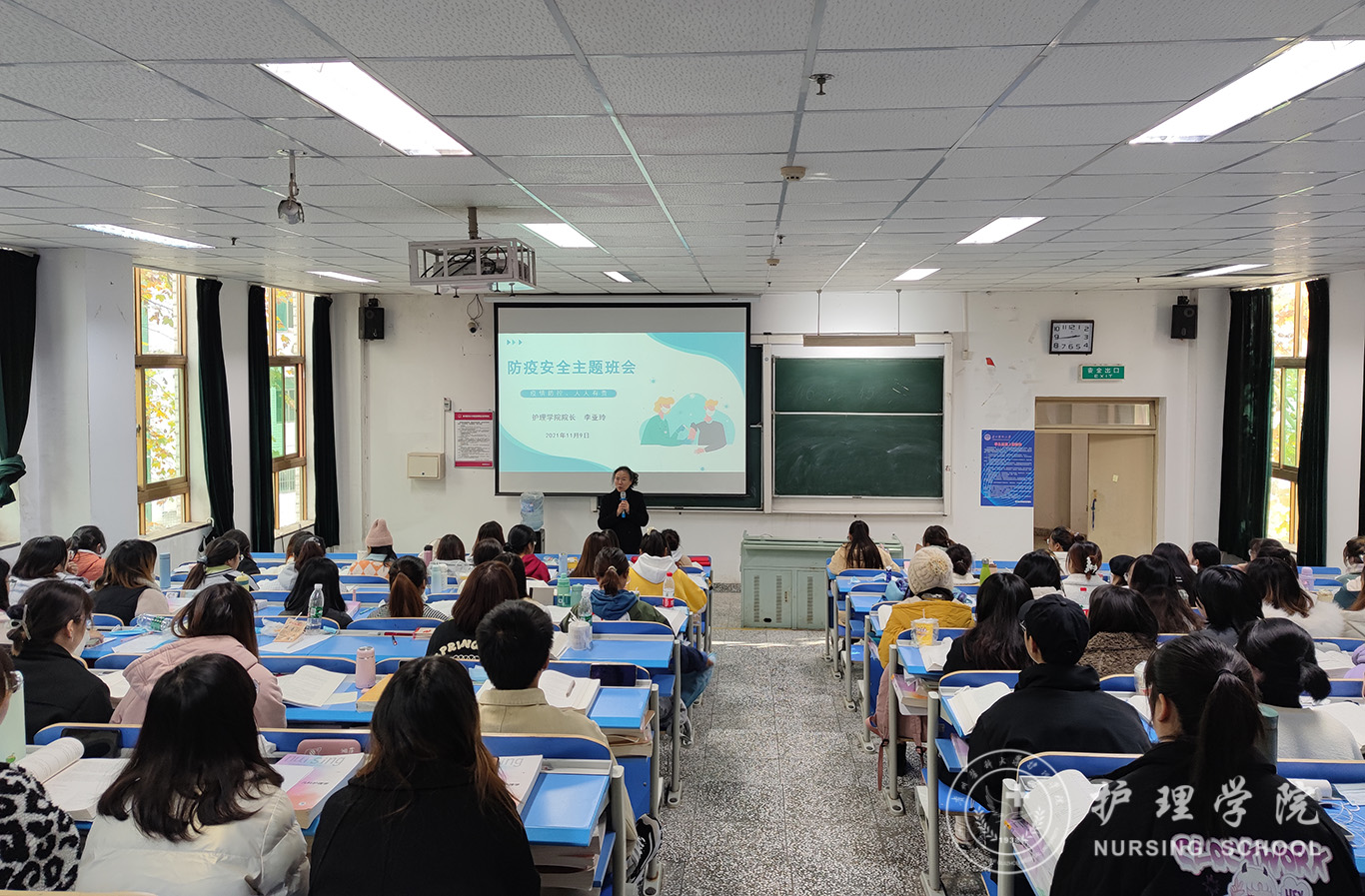 11月9日,为深入开展防疫安全教育,贯彻落实防疫常态化、防护生活化的战略目标。YABO鸭脖2019级护理学丙班组织开展一次特别的主题班会,诚挚邀请YABO鸭脖院长李亚玲以“防疫安全、人人有责”为题为全体同学讲授一堂生动有趣的思政课,辅导员杨叶卿参加。