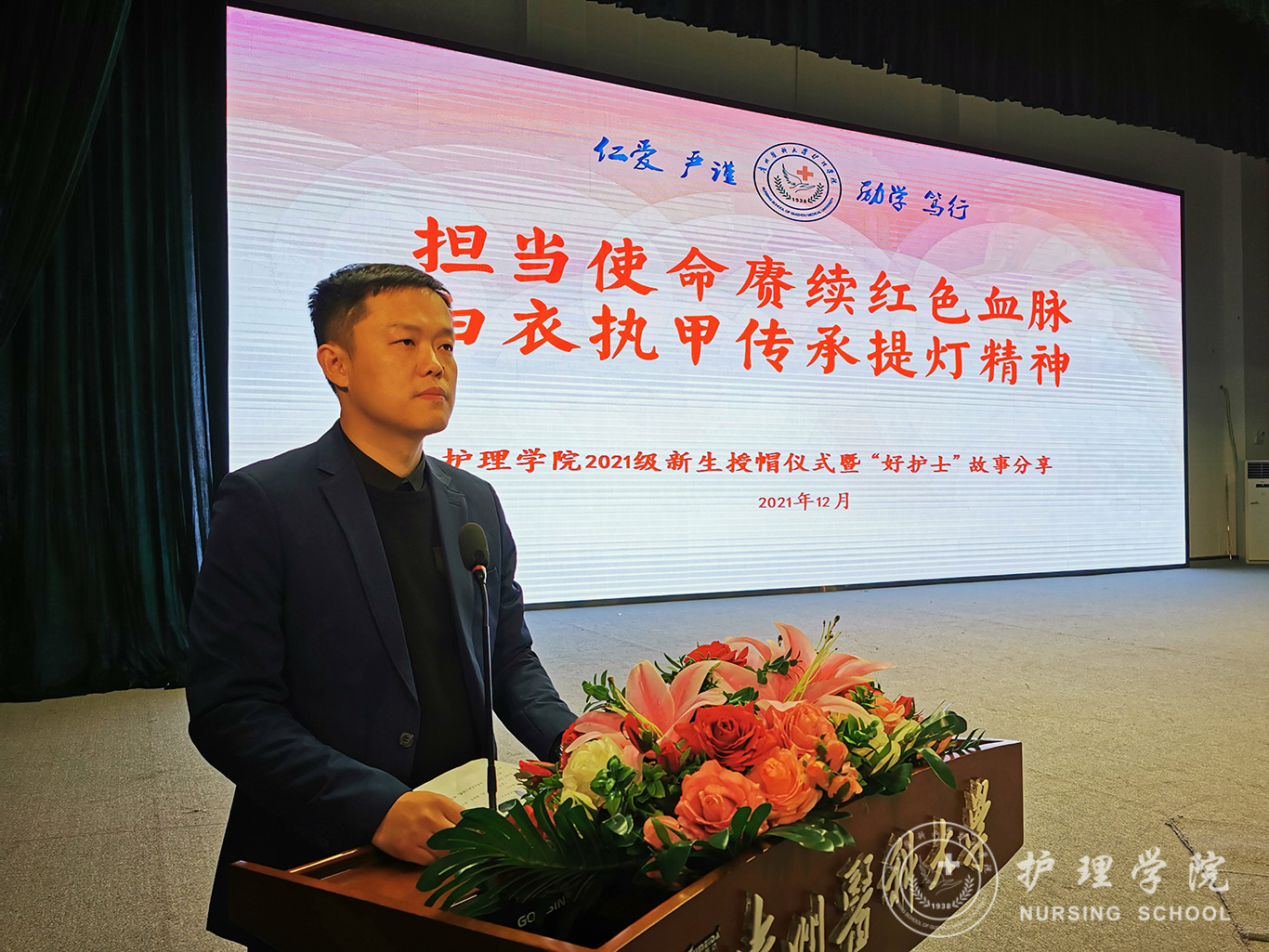 12月8日,为纪念“一二·九”运动86周年,传承和弘扬护理事业的光荣传统,激励新生增强使命感、责任感和归属感,在新时代新征程中勤奋学习,奋勇争先,YABO鸭脖在南校区大礼堂举行了以“担当使命赓续红色血脉、白衣执甲传承提灯精神”为主题的2021级新生授帽仪式暨“好护士”故事分享活动,由28位优秀护理前辈为724名护理新生授帽传烛。活动由院党委副书记兼纪委书记何为主持。