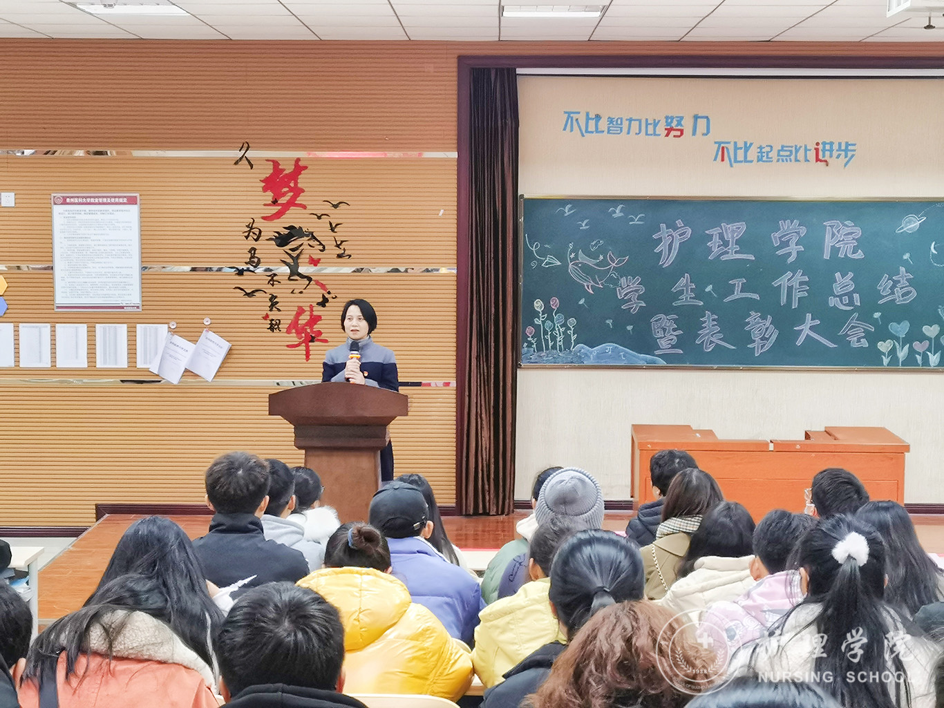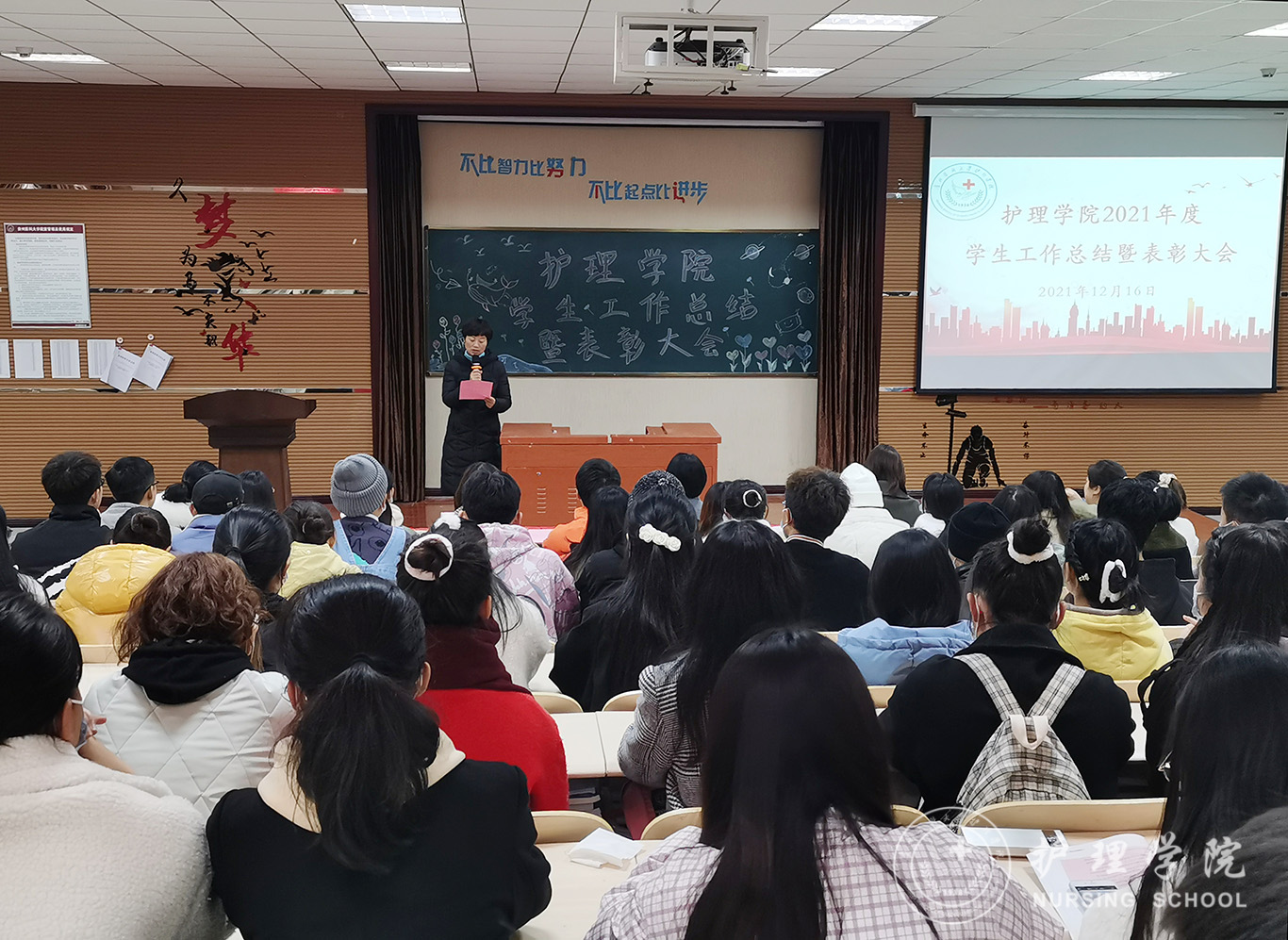 12月16日,为总结学院2021年度学生工作开展情况,表彰在学生工作中涌现出的优秀个人和先进集体,YABO鸭脖在南校区百川楼1101教室举行了学生工作总结暨表彰大会。YABO鸭脖党委书记杨英、副院长王秀红、副处级组织员张黎、学生第一党支部书记杨叶卿、学生第三党支部书记刘妍及学生代表参加了本次会议。会议由学生科副科长毕丽主持。