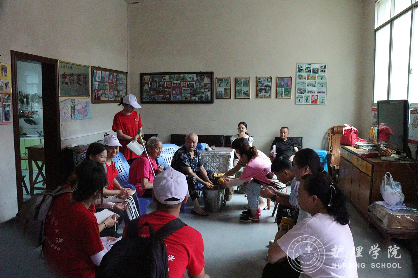 7月21日,为弘扬中华传统美德,关注乡村老人健康,学院师生党员代表前往焦溪镇敬老院走访慰问,开展了“我为群众办实事”主题党日活动。到达敬老院后,工作人员向志愿者们介绍了敬老院的有关情况,然后,志愿者们有序地进入老人们的房间进行志愿服务活动。志愿者们陪老人们聊天,为老人们表演节目、打扫卫生,同时发挥自己的专业特长为老人们测量血压,给予生活上的健康指导。为老人们的生活增添了乐趣,带去了温暖。