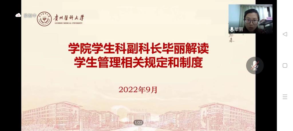 随后,毕丽为新生解读了学生管理相关规定和制度,并希望同学们能够遵守学校规章制度,做一名尊师守纪、全面发展的护理学子。