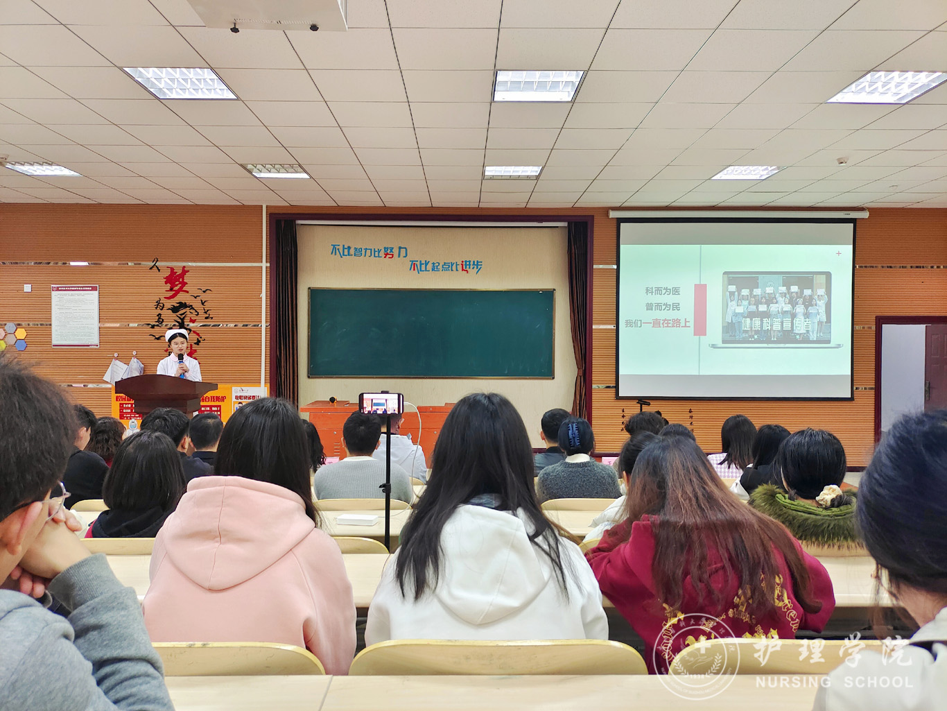 会议共四项议程。第一项,获奖学生代表卢唱唱、周承星、孙念祖依次作交流发言。三位同学向大家介绍了学科竞赛相关要求,分享了自己的参赛经验,以自身经历告诉同学们,趁年轻,多去尝试,做一个崭新的自己。第二项,李亚玲通过多年的临床经验向大家讲述了智慧护理的新要求,让同学们明白了创新对医护行业发展的重要性。第三项,涂波从学科竞赛的项目种类、研究方向、参赛意义等方面对大家进行了详细讲授,他要求大家一定要将学科竞赛思创融合与产创融合协调发展,以赛促学、以赛促教、以赛促研。第四项,杨英作总结讲话并提出三点要求:一是要充分认识到学科竞赛的重要意义,不断提升自身创新能力。二是要充分利用专业优势,树立创新意识,通过比赛来磨砺自己。三是要创新宣传方法,拓宽比赛思路,多思考、多尝试,方能多收获。