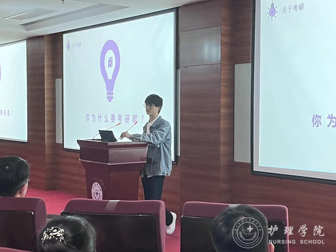首先,胡锦久从护理学本专业考研的角度分享了自己备考期间的真实感受和经验,详细介绍备考中各科目时间规划和相关学习资料获取途径和方法,以及如何在备考中平衡实习和学习的关系。接下来,黄露瑶围绕推免研究生分享了推免中的时间规划和面试经验技巧,让大家详细了解了推免研究生的整个过程和注意事项。蒋施则从跨专业考研方面分享了如何选择院校、如何获取考研相关信息资料、如何坚定考研目标,强调了考研信息收集的重要性和坚持的必要性。最后,在经验交流讨论环节,2020级学生就个人在备考过程中遇到的困难、疑虑等与主讲的三位优秀毕业生进行了深入交流。