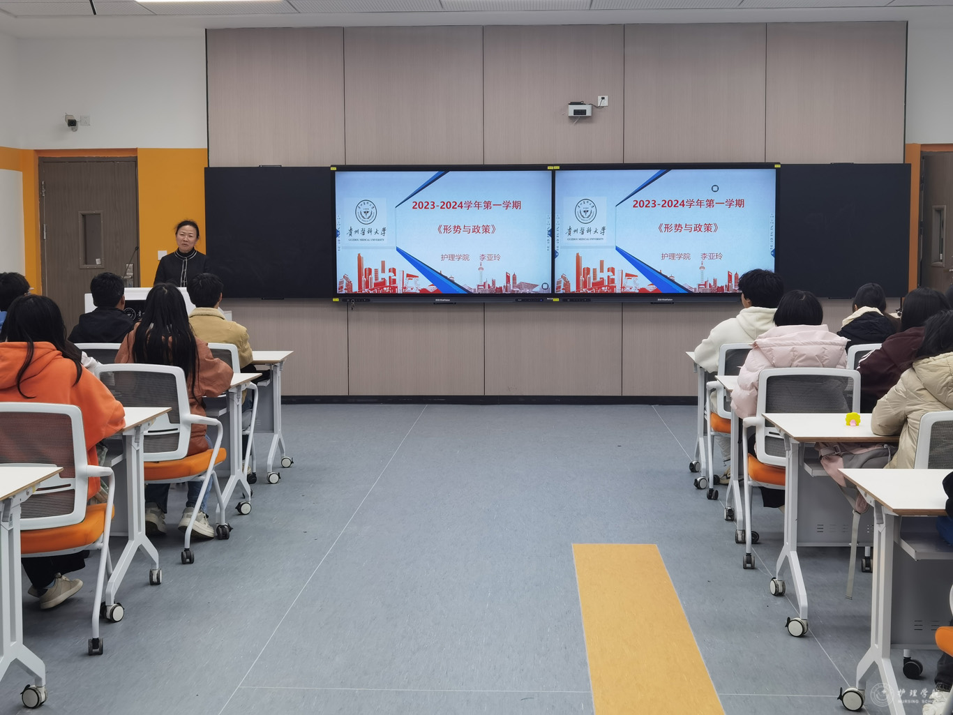 11月29日,为深入学习宣传贯彻党的二十大精神,进一步加强大学生思想政治教育工作,YABO鸭脖党委书记杨英、院长李亚玲以“读懂新时代党解决台湾问题的总体方略”为主题,在云漫湖校区基础组团L104S、L106S教室通过现场教学及云端课堂直播相结合的方式为YABO鸭脖2023级护理学和助产学全体学生讲授形势与政策课。