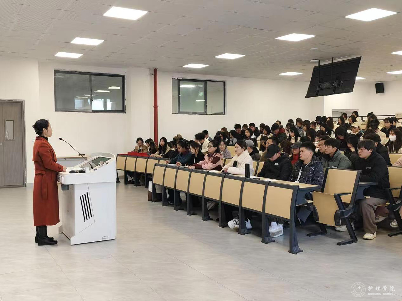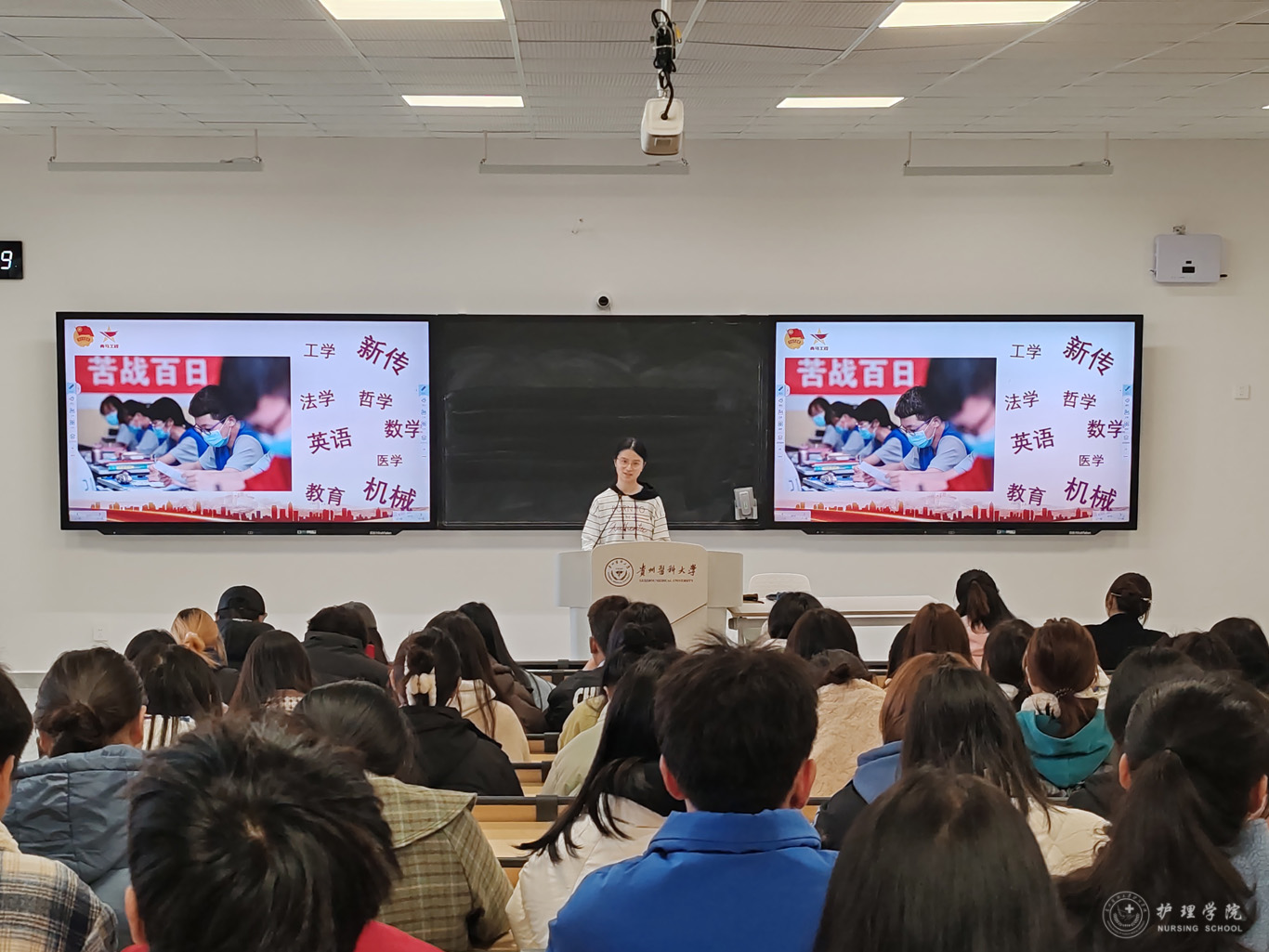 孙念祖以当前高校毕业生就业形势、在校生学业困境等热点问题引入主题,以冬奥会优秀青年榜样杨倩、张家齐等为例,鼓励护理学子坚定理想信念、锤炼过硬本领、积极担当作为。孙念祖结合自己在校经历,从思想引领、校园经历、个人荣誉、科研竞赛、志愿服务、媒体工作、未来寄语等七个方面鼓励同学们珍惜美好韶华,扛起青春责任,勇担时代使命,在“社会”这个大课堂里砥砺奋斗、锤炼本领、增长才干。