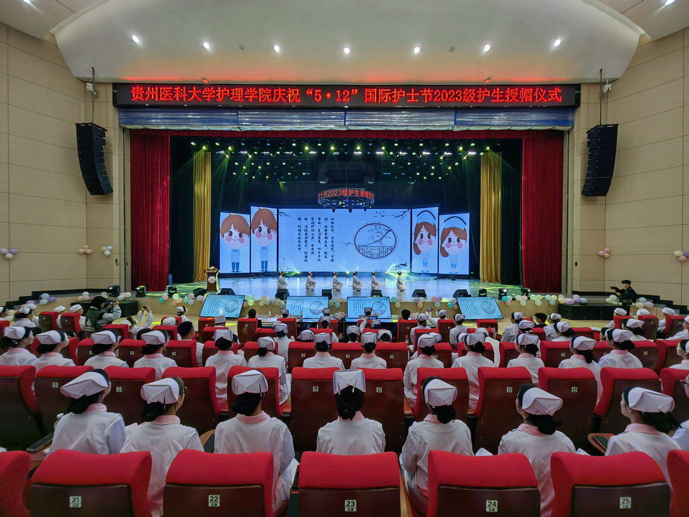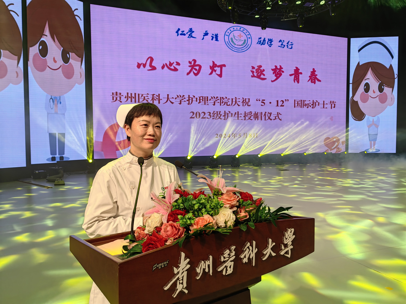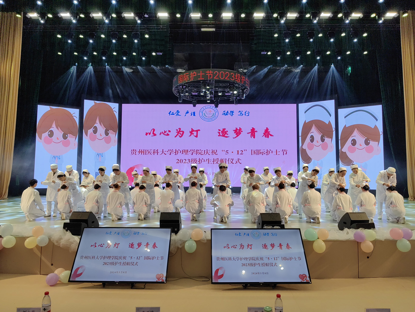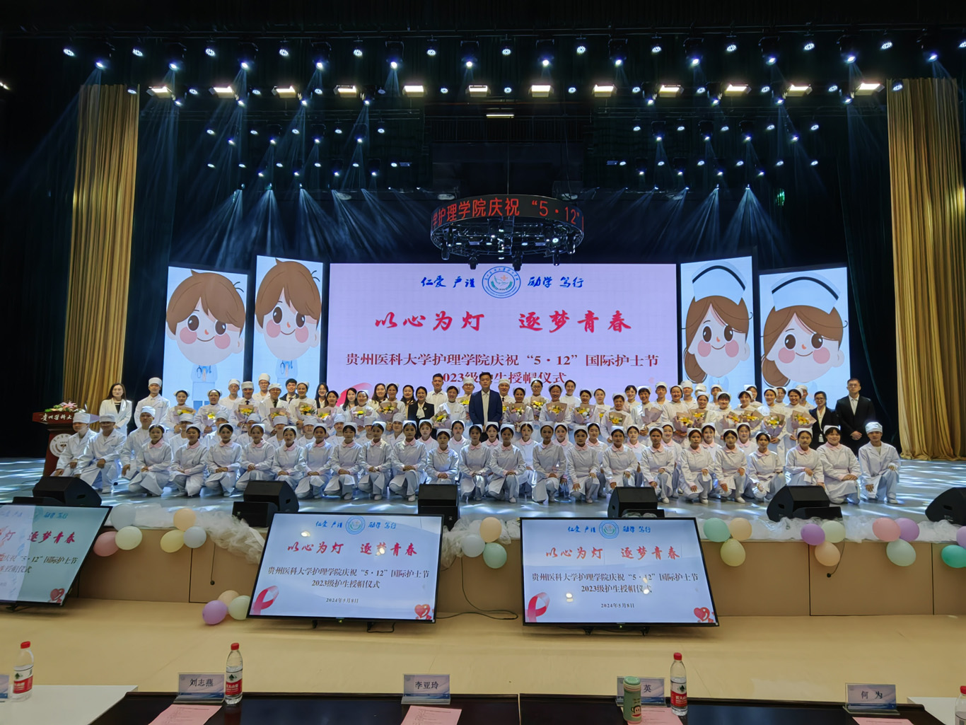 5月8日,在第113个5·12国际护士节到来之际,为弘扬救死扶伤和无私奉献的精神,培养护理学子的职业道德和理想信念,丰富校园文化生活,YABO鸭脖在云漫湖校区礼堂举办了以“以心为灯,逐梦青春”为主题的2023级护生授帽仪式,由28位优秀护理前辈为678名护生授帽传烛。学院领导班子、全院教职工及2022级、2023级学生参加本次授帽仪式,仪式由副院长王秀红主持。