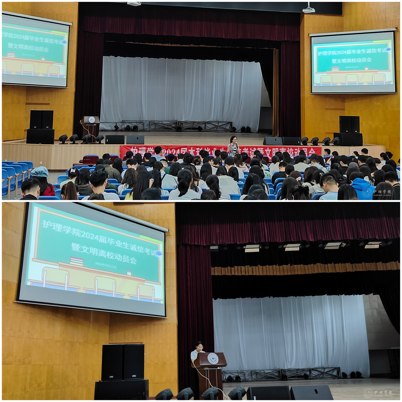 5月11日,为加强学风建设、严肃考风考纪,营造健康、文明、有序、和谐的毕业生离校氛围,YABO鸭脖在北京路校区礼堂召开了2024届本科毕业生诚信考试暨文明离校动员会,YABO鸭脖党委副书记兼纪委书记何为、学生管理科副科长毕丽以及2024届本科毕业生参加此次会议。会议由毕业班辅导员刘妍主持。
