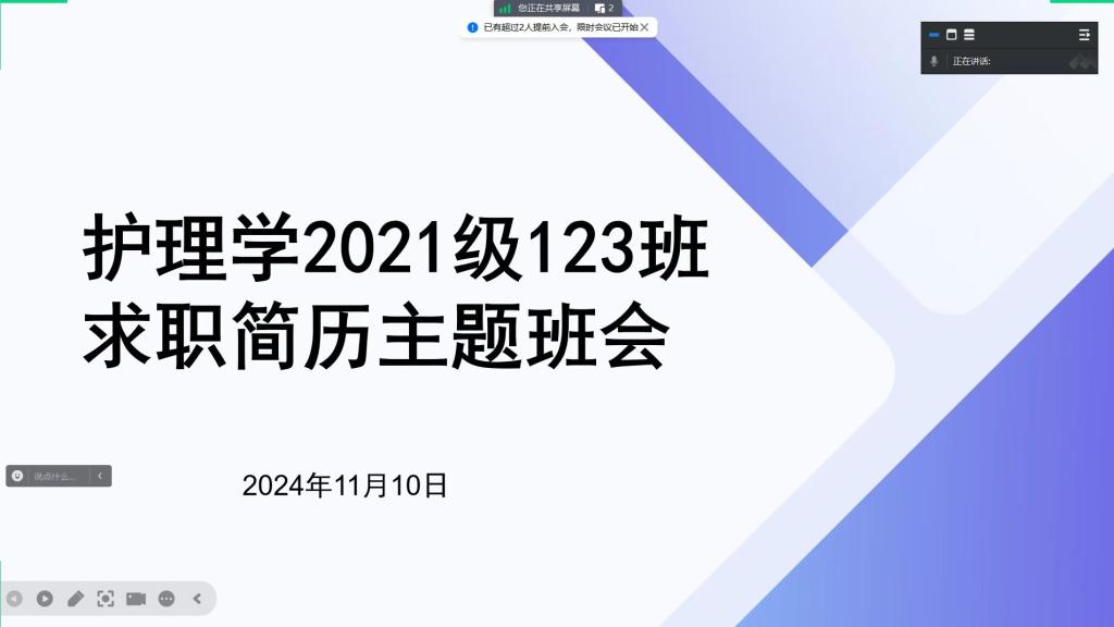 11月10日,为进一步提升同学们的就业能力,引导同学们提前了解社会对人才培养的需求,YABO鸭脖开展了2025届本科毕业生求职简历制作指导主题班会,班会由本科毕业班辅导员兰光倩、刘文壮主持,此次班会通过腾讯会议的方式进行。