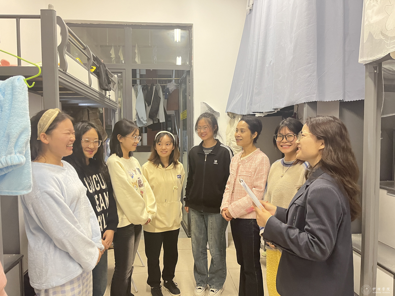 在走访过程中,杨英详细询问了同学们的日常作息、学习情况以及生活中遇到的困难,她特别关注同学们的饮食起居以及心理健康等方面的问题,并鼓励同学们要珍惜大学时光,努力学习专业知识,积极参与社会实践,不断提升自己的综合素质。杨英还特别走进了自己联系的学生寝室C5-4-27宿舍,与同学们座谈交流,详细询问了她们的生活状况、学习状况,并回答了同学们关于生活、学习、专业成长相关的问题,她鼓励同学们要做一个有情怀、敢创新、自律严的新时代大学生。