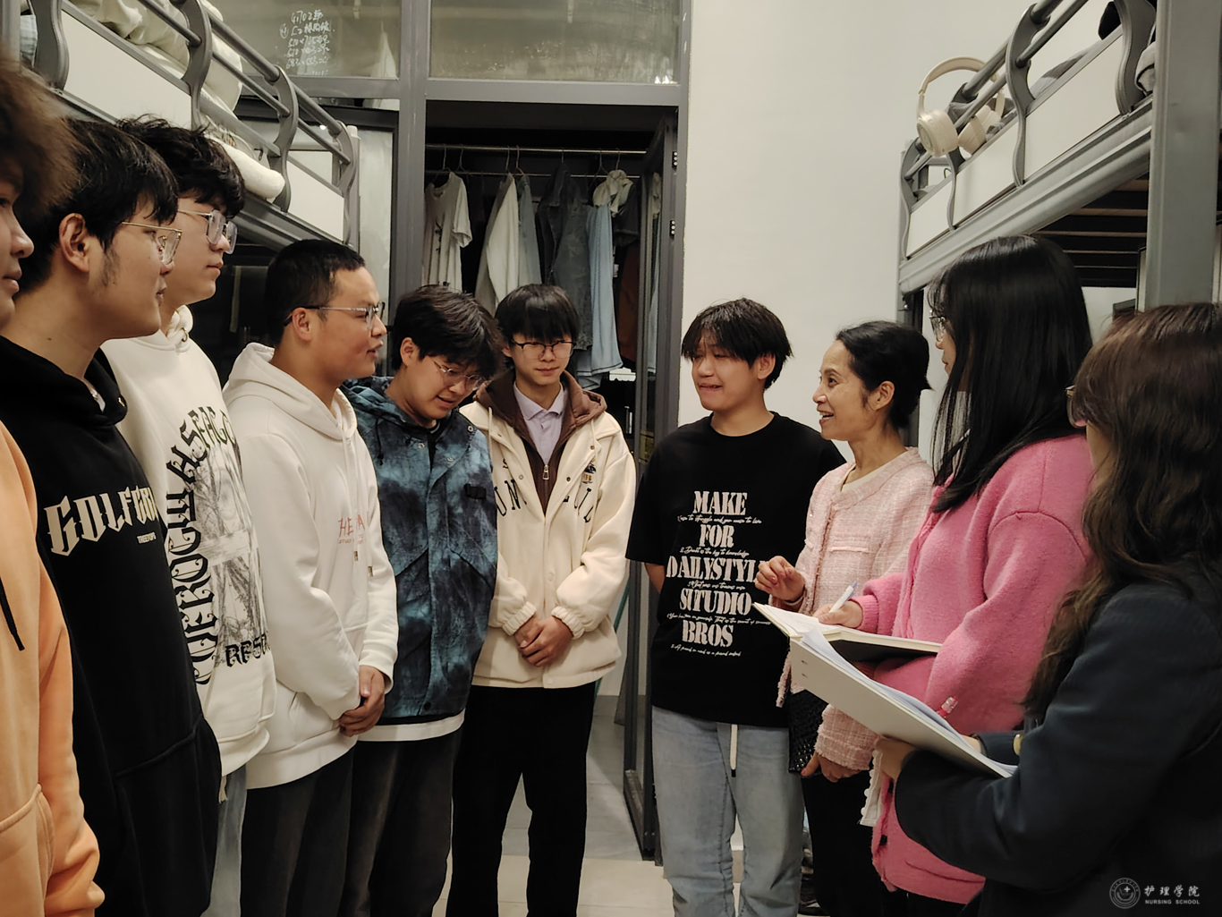 11月11日晚,为更好地倾听学生心声,了解学生需求,加强师生互动交流,YABO鸭脖党委书记杨英带领带班辅导员深入走访了云漫湖校区本科生和预科生部分学生寝室,与同学们亲切交流互动。