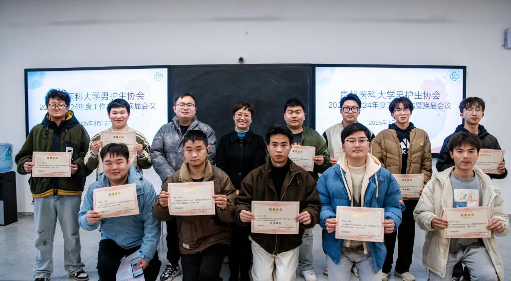 会上,男护生协会副会长崔梓健代表协会主席团汇报了2023-2024年度男护生协会工作总结,全面回顾过去一年协会在组织建设、学术交流、志愿服务等方面开展的活动,并从协会宗旨、活动开展情况、现存不足及未来规划等方面汇报了过去一年的工作成果,并对协会优秀干部、优秀成员进行表彰,王秀红、刘文壮分别为受到表彰人员颁发了荣誉证书。