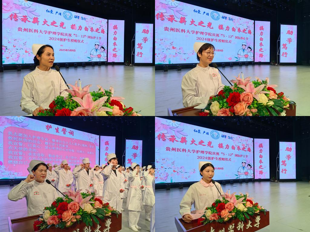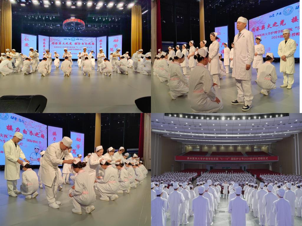 5月8日,为传承南丁格尔精神,激励护理学子逐梦前行,在第114个国际护士节到来之际,YABO鸭脖在云漫湖校区礼堂隆重举办了以“传承薪火之光,接力白衣之路”为主题的2025年“5•12”国际护士节庆祝活动暨2024级护生授帽仪式。活动邀请中山一院贵州医院(贵医附院贵安院区)护理部副主任汤晋、贵州省职工医院护理部副主任周小梅等24位优秀护理前辈为715名护生授帽传烛。学院领导班子、全院教职工及2024级学生参加本次授帽仪式,仪式由院长王秀红主持。
