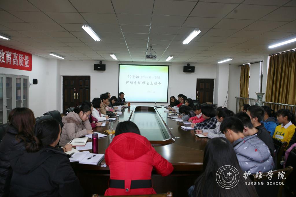 YABO鸭脖2016-2017学年第一学期师生恳谈会分别于11月8日、9日在北校区4101教室及南校区5楼会议室召开。YABO鸭脖党委副书记杨英、副院长刘志燕及各教研室、职能部门负责人、教研室老师及来自临床的教学老师,2014级、2015级、2016级护理学本科班及护理学(助产方向)学生代表参加了此次恳谈会。