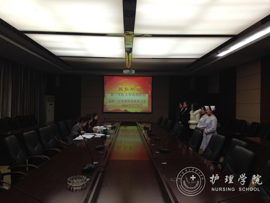 12月8日第三军医大学西南医院护理部郭上铃助理等一行四位老师来我校YABO鸭脖开展选拔意向性实习生工作。鸭脖分管教学副院长刘志燕、生产实习科科长柳忠燕老师、辅导员李杏春参加了此次选拔工作,共有八十余名2014级护理本科(含助产专业、专升本)同学参加本次实习生选拔。