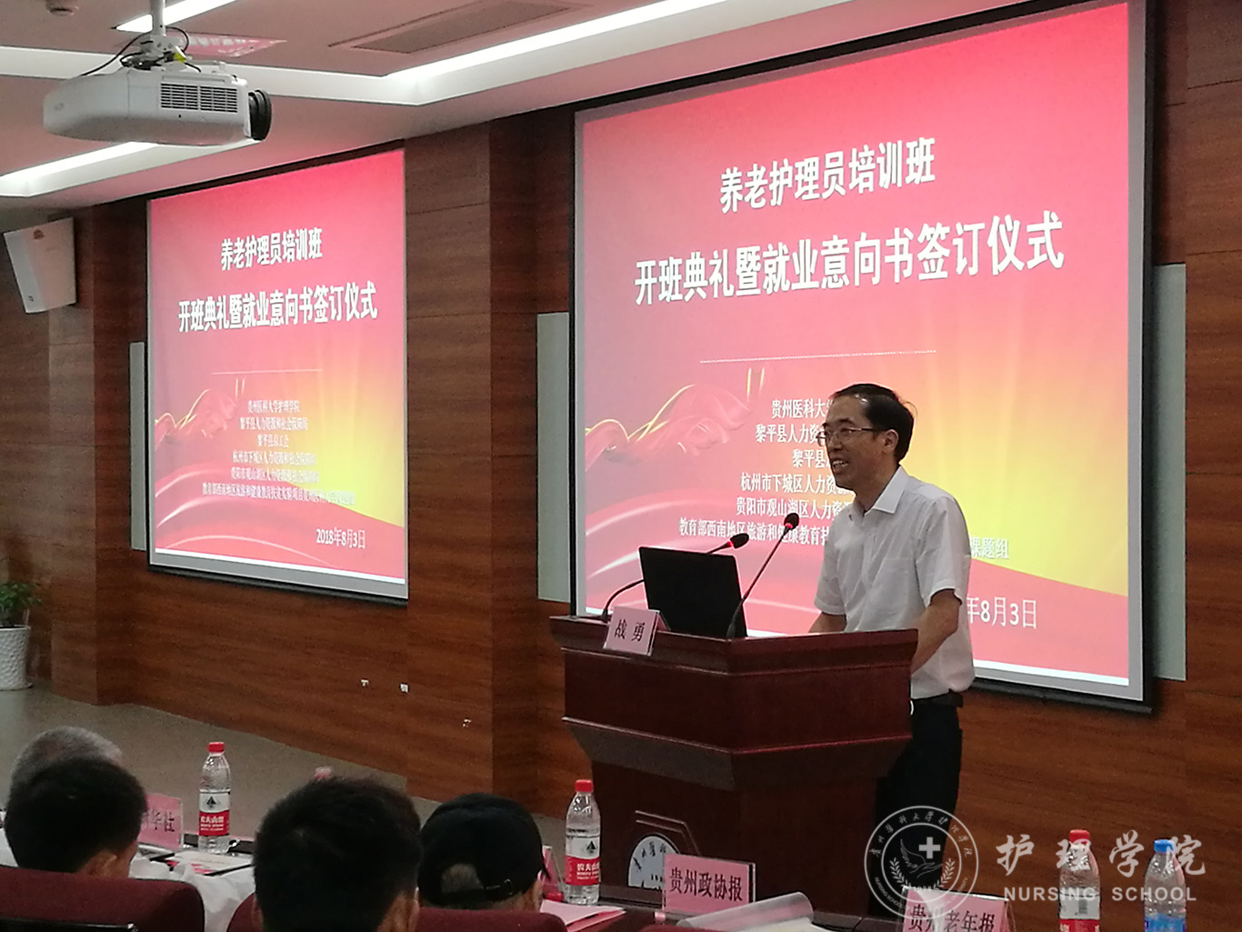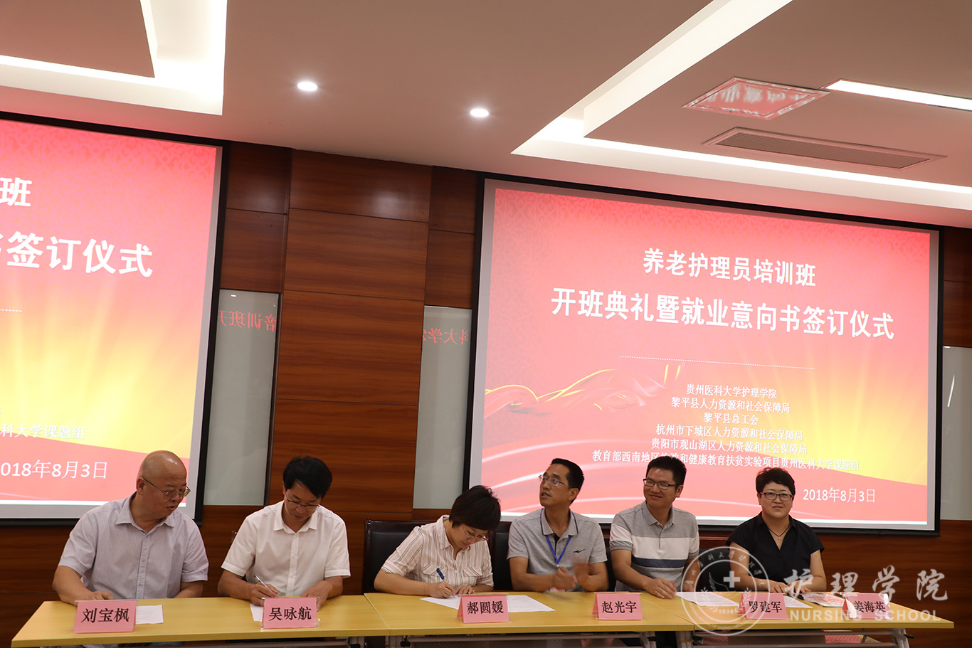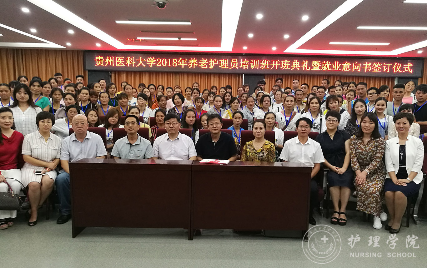 8月3日下午,我校在北校区临床技能中心207会议室举行2018年养老护理员培训班开班典礼暨就业意向书签订仪式,此培训班由YABO鸭脖与黎平县人力资源和社会保障局、黎平县总工会、浙江省杭州市下城区人力资源和社会保障局、贵阳市观山湖区人力资源和社会保障局联合举办。校党委副书记战勇、中国红十字总会发展中心、北京曜阳养老服务中心、北京儆堂集养老中心、贵阳曜阳养老服务中心等需用人单位负责人出席,YABO鸭脖领导及相关部门负责人参加,开班典礼由YABO鸭脖教学科研管理科科长王秀红主持。