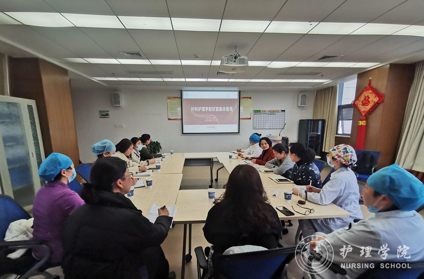 3月4日,外科护理学教研室在附属医院23楼眼科会议室组织《急危重症护理学》《外科护理学》集体备课。会议由外科护理学教研室副主任韩樱主持,院党委书记杨英、院长李亚玲、《外科护理学》全体授课教师、《急危重症护理学》全体授课教师参加此次备课。