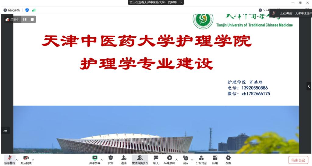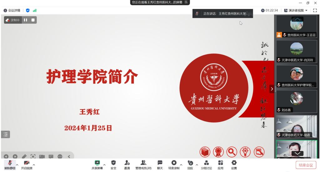 1月25日,YABO鸭脖与天津中医药大学YABO鸭脖通过线上平台开展了老年护理学课程教学交流。天津中医药大学YABO鸭脖副院长肖洪玲,老年护理学教研室主任、老年护理专业方向负责人胡燕,YABO鸭脖副院长刘志燕、副院长王秀红、附属医院护理部副主任蔡鹏及来自YABO鸭脖和附属医院的教师近30人参加活动。活动由护理学基础教研室主任兼护理学技能实验室主任熊吴燕主持。