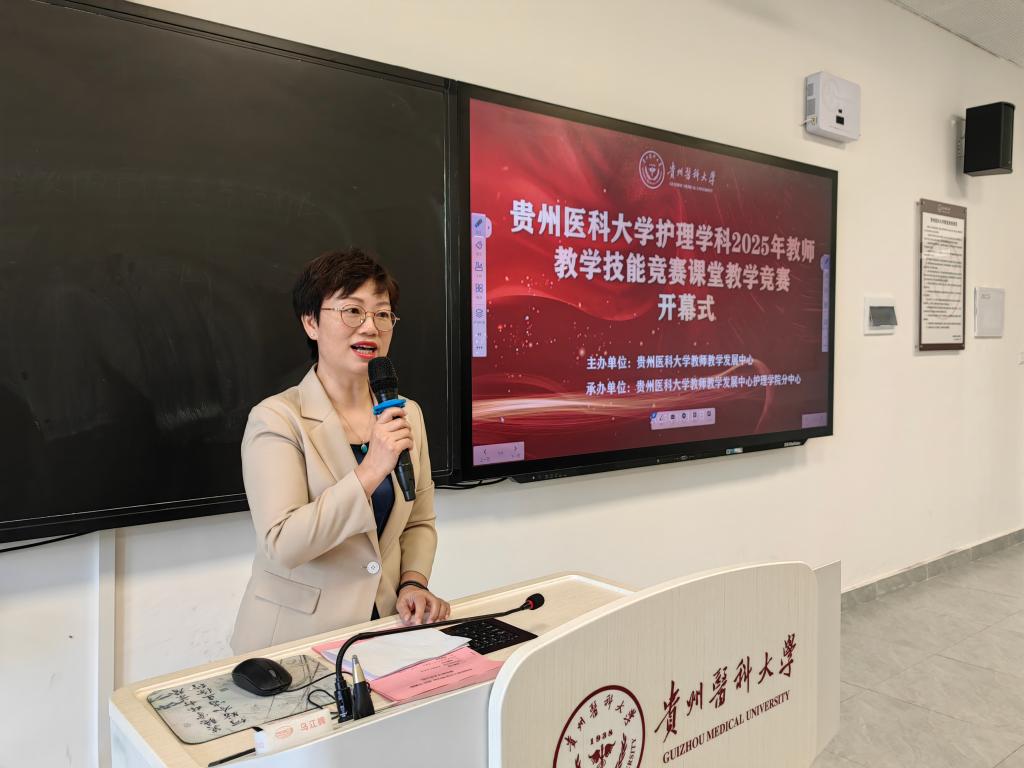 首先李海洋发表致辞,向来自18家参赛单位的32位优秀教师及评审专家表示最诚挚的欢迎。他强调,护理学作为关乎人民生命健康与福祉的重要学科,其教育质量直接关系到“健康中国”战略的推进。在此背景下我们举办本次教学技能竞赛恰逢其时。教学技能竞赛对于促进教师专业成长、深化教学改革具有重要意义。本次竞赛不仅是一次教学技艺的比拼,更是我们深入推动医教协同,深化高等护理教育教学改革的一次重要检阅。希望参赛教师赛出水平,赛出风格,更要赛出精神。随后,YABO鸭脖副教授马丽介绍了比赛流程、分组及注意事项,宣读竞赛规则与流程。