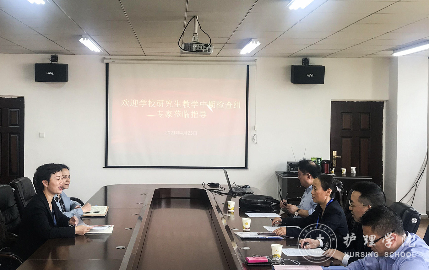 4月23日上午,学校研究生教学中期检查督导小组曹煜、蔡扬、潘卫东、彭吾训四位专家莅临鸭脖检查研究生教学工作。党委书记杨英、副院长王秀红、各教研室教师、教学科研管理科全体成员、研究生辅导员等到场迎检。王秀红对各位专家的莅临指导表示热烈欢迎,并从学院研究生教学概况、自查工作情况、特色与亮点、存在的问题、下一步打算及建议等方面汇报了鸭脖研究生教学目前的基本情况。杨英就鸭脖学科建设发展中存在的短板做了补充,期待通过专家的把脉,帮助YABO鸭脖开出有效的药方,切实推动护理学研究生教育高质量发展。接下来督导专家对各教研室及教学科研管理科研究生教学管理资料进行现场检查。专家们对鸭脖此次中期检查相关工作的组织给予了高度肯定,同时针对管理中的问题也提出了中肯的意见及建议。 王秀红表态一定认真梳理督导专家们提出的宝贵意见和建议,逐一整改落实,不断努力,以进一步提高鸭脖研究生培养质量。