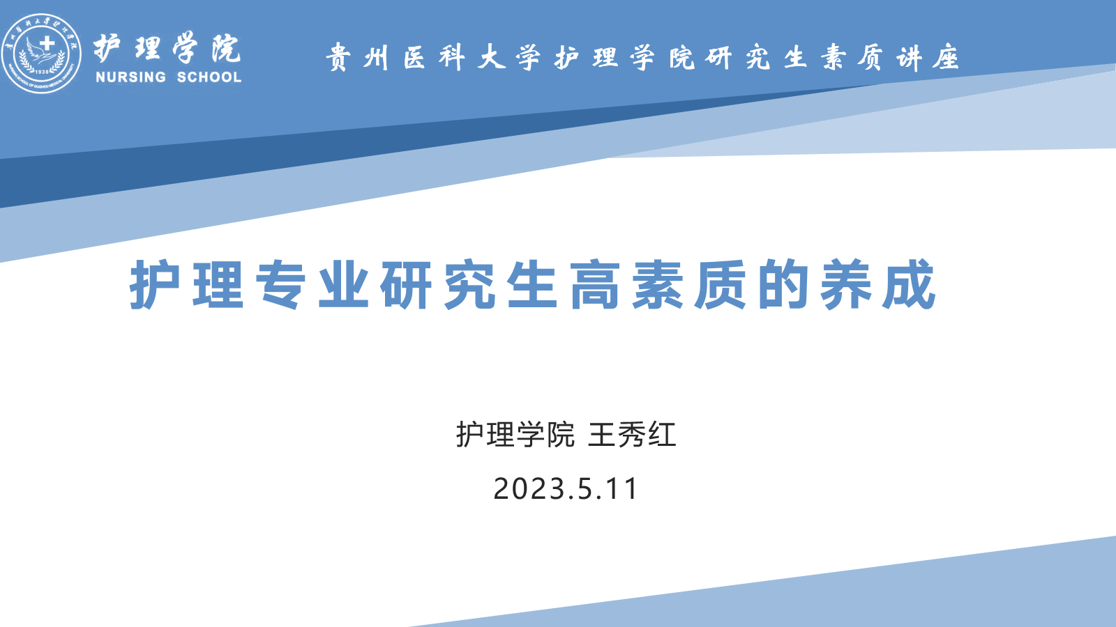 接下来进行的研究生素质培训讲座上,王秀红以“护理专业研究生高素质的养成”为题,从如何培养高素质的护理专业研究生、成长最重要的九大素质、成功具有的七大要素等方面结合实践与研究生同学进行了经验分享。她嘱托同学们要不忘初心、坚守理想信念、并以优秀的护理前辈为榜样,注重培养自身高尚的道德情操,保持良好的自身形象和严谨的工作作风,要以追求丰富的理论知识、精湛的护理技能、一定的管理能力、良好的沟通技巧、必备的教学和科研能力,从日常做起,自觉自律朝着“医教研管”一体化专家方向发展成长。
