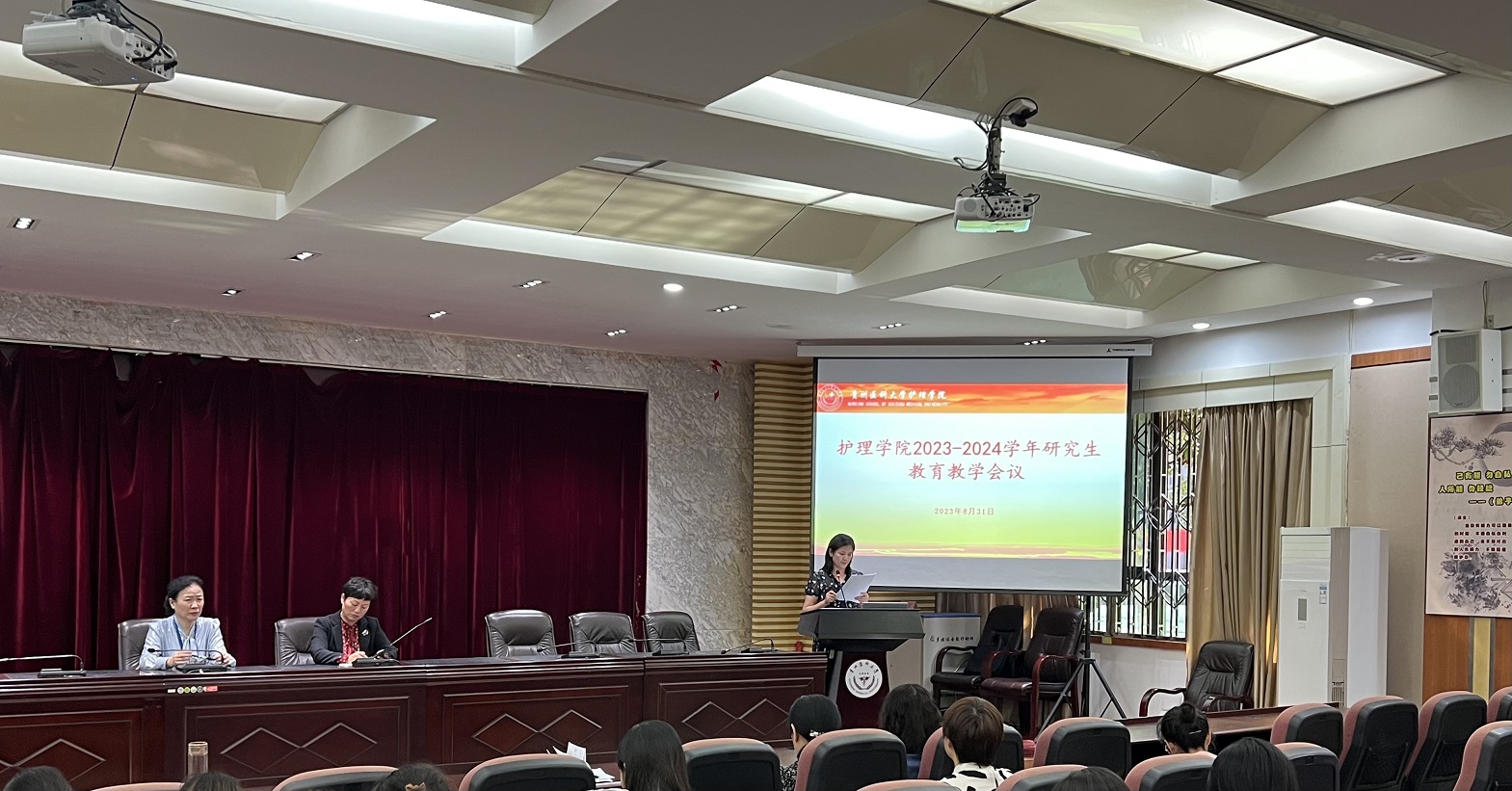 8月31日,YABO鸭脖在北京路校区道德讲堂召开了2023-2024学年第一学期研究生教育教学会议。学院领导、全体专业教师、全体导师、副导师、研究生临床带教指导教师、课程负责人、教学科研管理科全体教师、研究生辅导员参加。会议由教学科研管理科科长卢海霞主持。