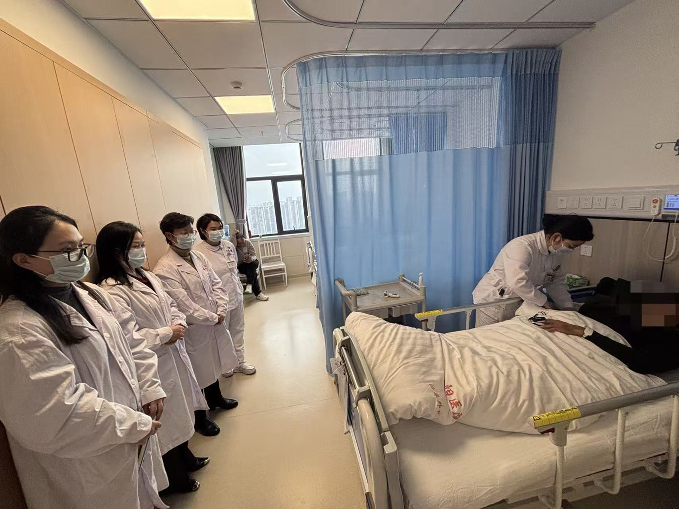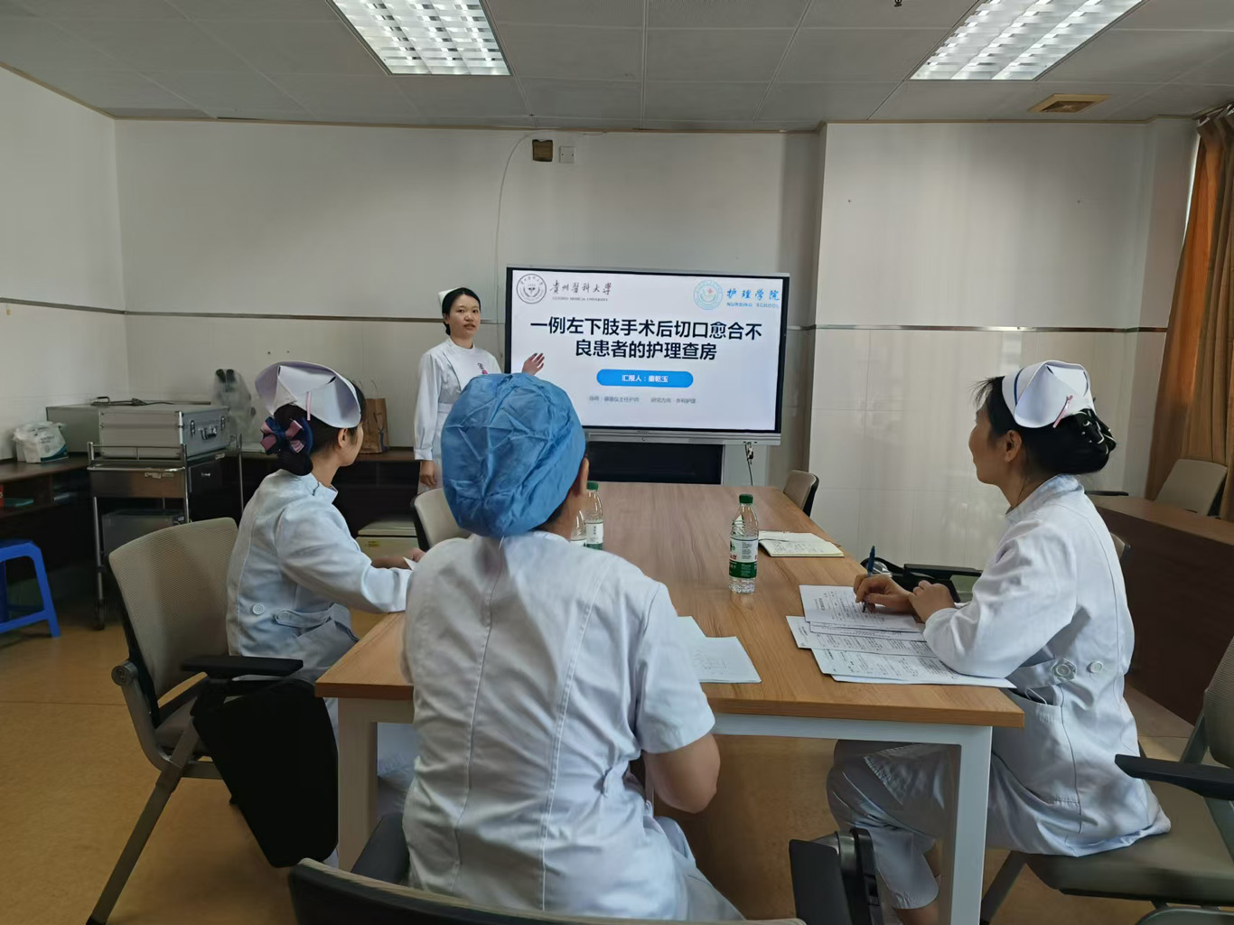 考核主要包括专业相关英文文献汇报及临床综合技能考核。英文文献汇报重点考察其国际文献检索、理解分析与学术表达能力。临床综合技能考核,通过对临床病例的全面处理,考核病例汇报、床旁评估、健康教育、循证实践报告等综合能力。最后综合评价实习手册、病历资料完成质量及带教老师、患者反馈给出临床实践终末考核成绩。各站点在学院统一协调与站点组长、督导的细致组织下,严格按照方案有序完成全部考核工作。