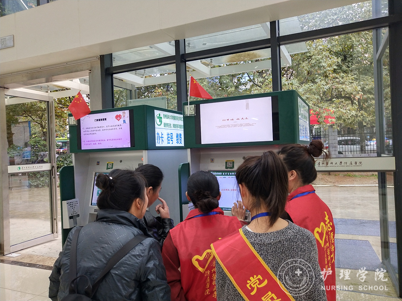 在祖国70华诞之际,为深入开展“不忘初心、牢记使命”主题教育,弘扬“奉献、友爱、互助、进步”志愿者服务精神,更好地传承南丁格尔精神,服务人民卫生健康事业。10月26日,YABO鸭脖学生第一党支部党员志愿者前往贵医附院门诊部开展志愿服务活动。