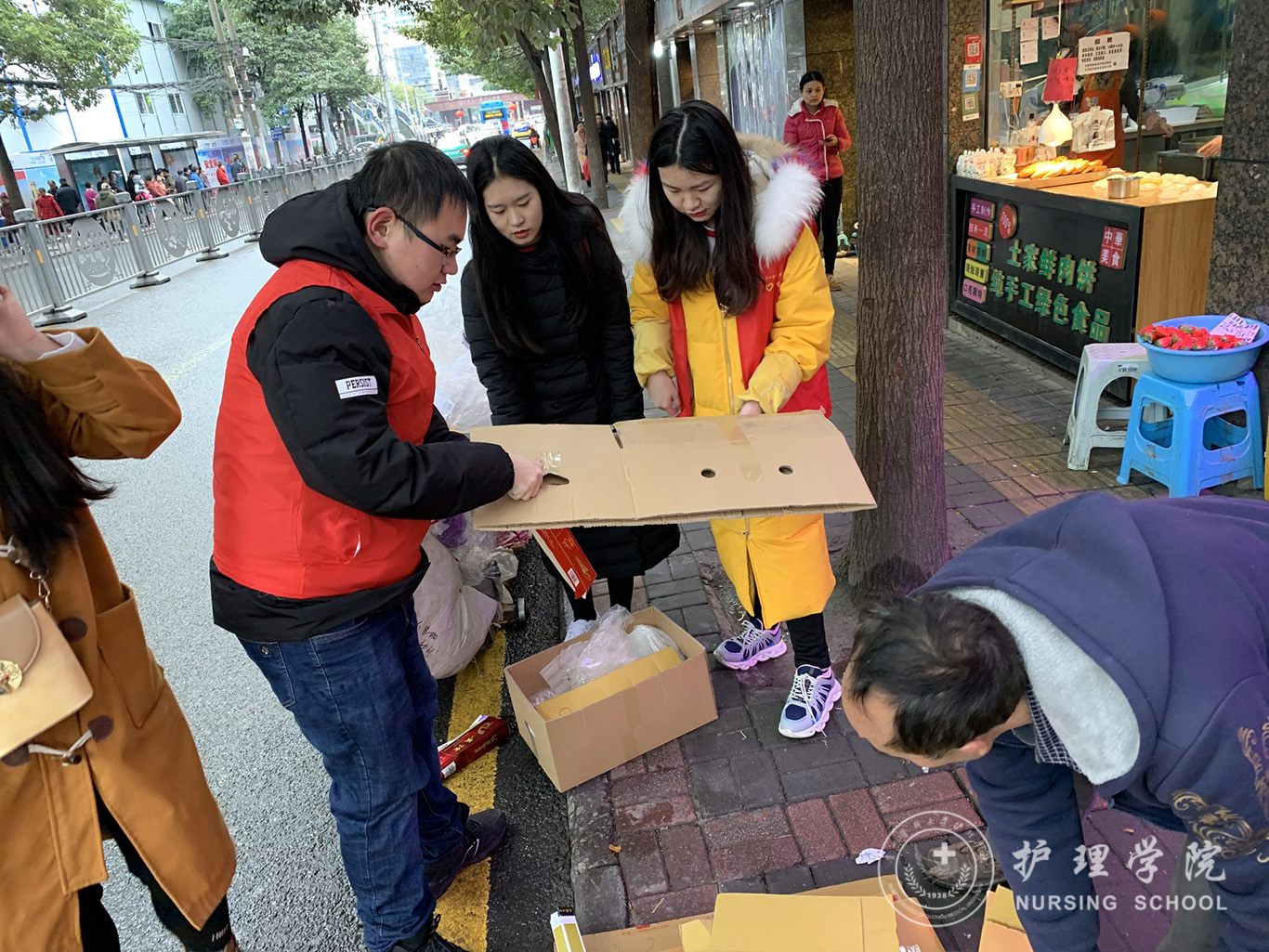 在祖国70华诞之际,为深入开展“不忘初心、牢记使命”主题教育,弘扬“奉献、友爱、互助、进步”志愿者服务精神,更好地传承南丁格尔精神,服务于广大人民群众。11月30日,YABO鸭脖学生第二党支部党员志愿者在北校区周边街道开展了主题为“志愿服务担使命,为民服务解难题”志愿服务活动。